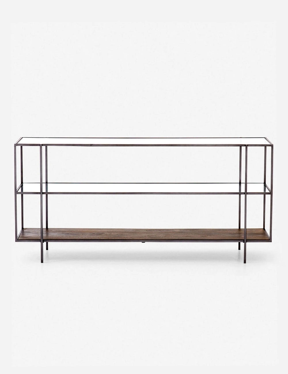 The juxtaposition between glass and wood make for an impressive display in the Asher Collection. A slim profile allows for placement in an entryway, and three tiers of shelving allow for maximum storage space to display trinkets, books, and other decorative objects.