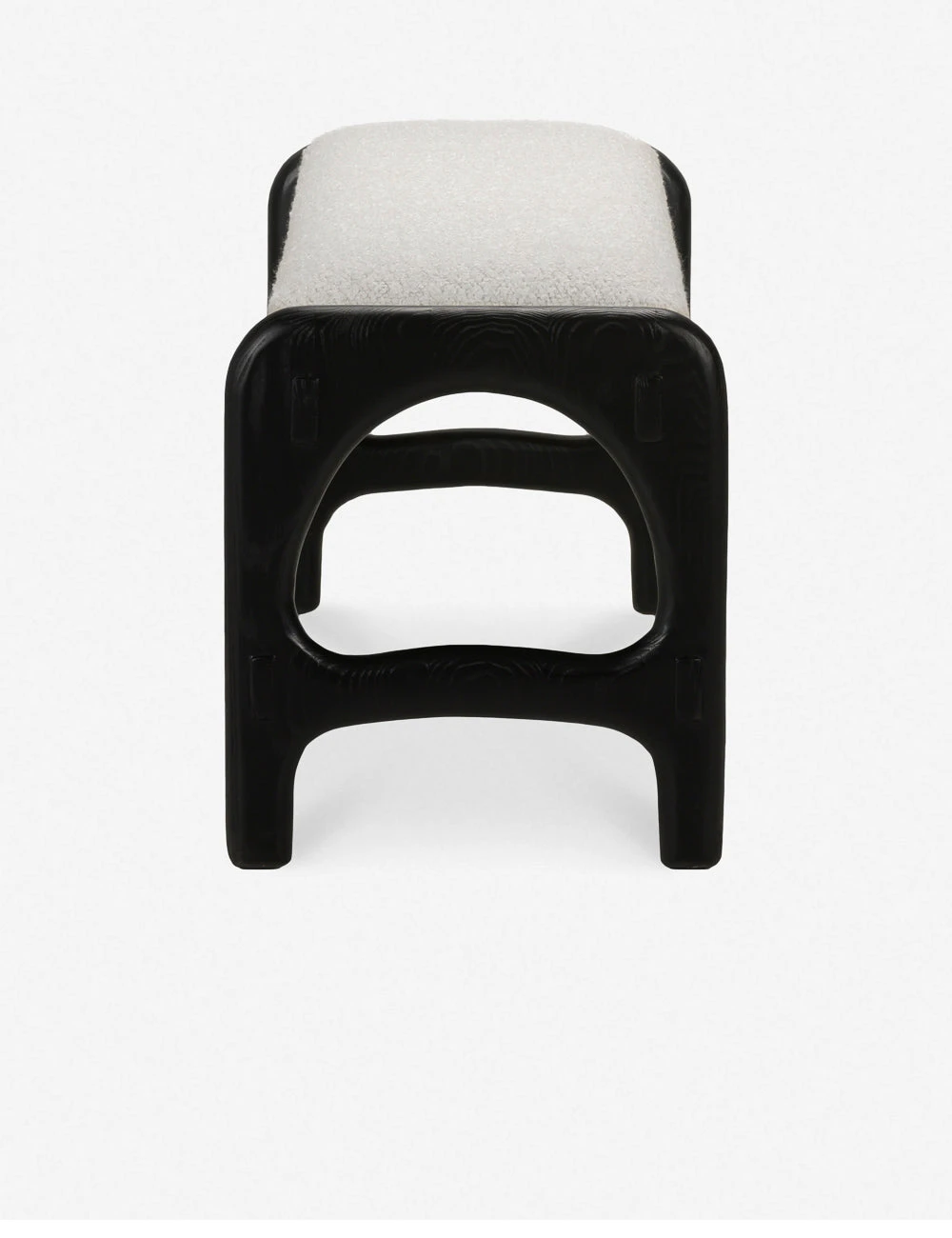 Architectural lines and rounded edges offer this ash wood bench a soft, rustic appeal. With its artisan-inspired joinery and upholstered seat, this bench provides a dynamic element for your entryway, living space, or at the end of your bed with inviting textural appeal.