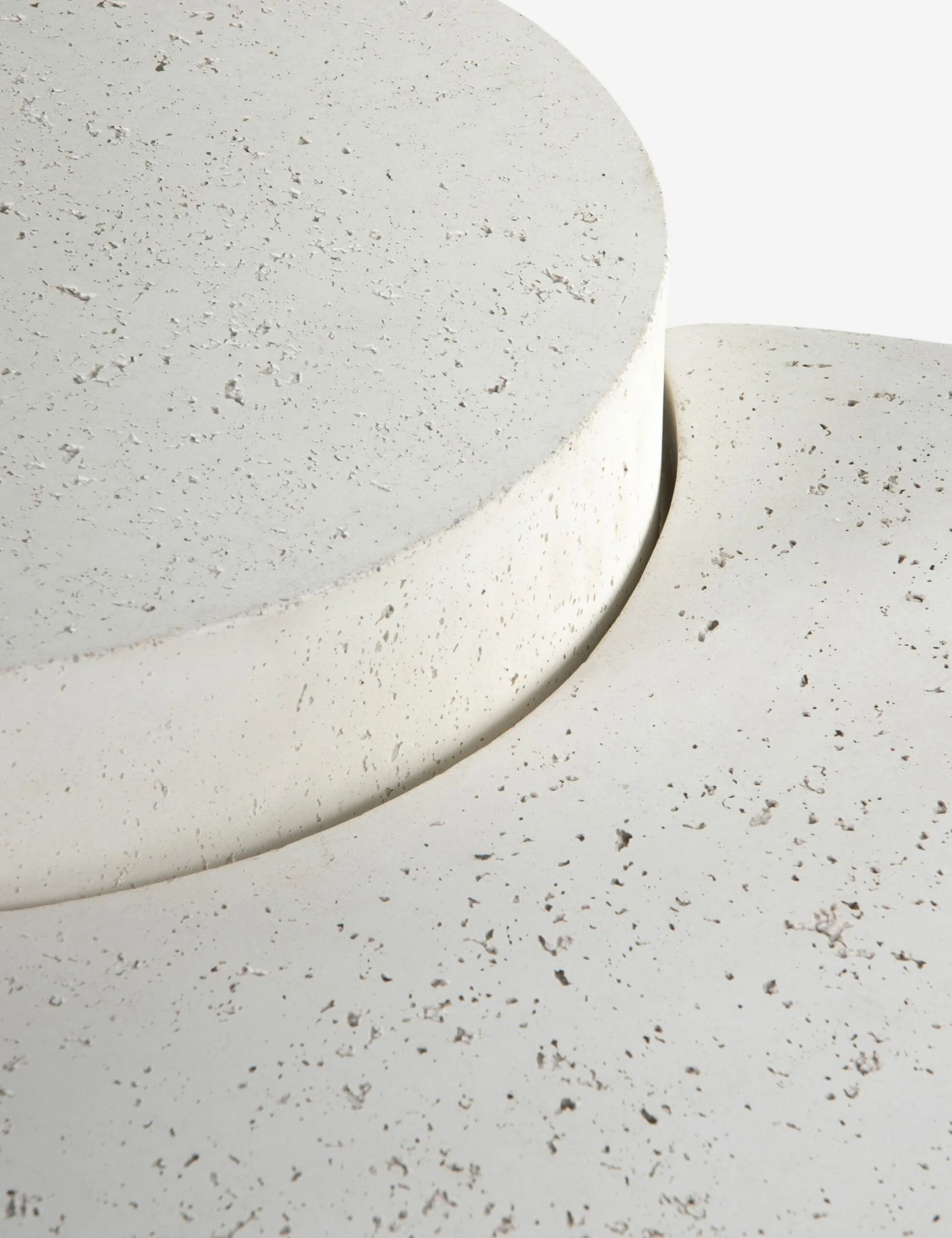 A spare, refined silhouette defines this nesting concrete coffee table with its white, pitted finish that takes a cue from mid-century coral décor. It will bring a sculptural element to a space as a middle table and can be styled with a luxe vignette for a baroque maximalism or left unadorned for a pared-down fresh, modern look.