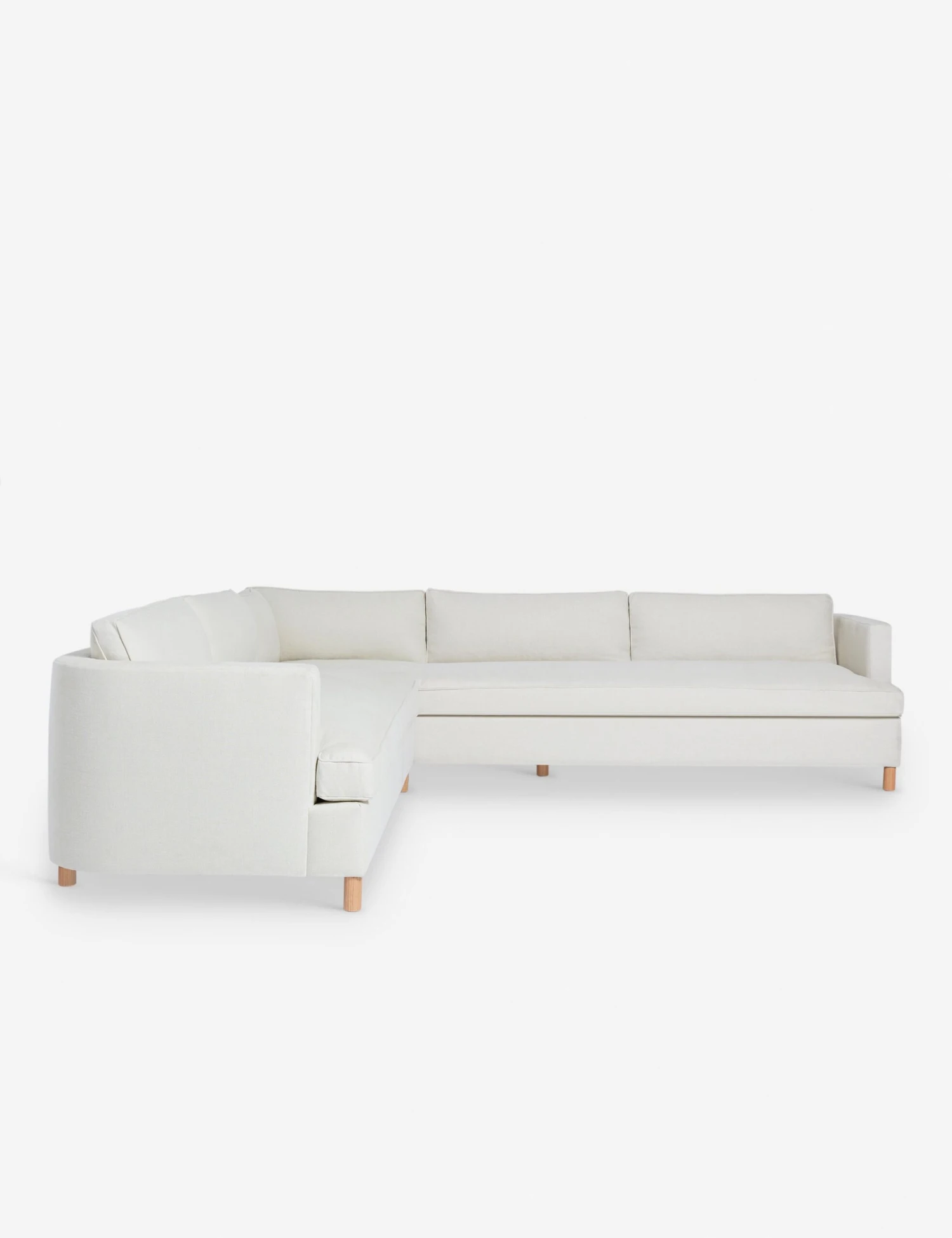 From the exclusive Ginny Macdonald collection for Lulu and Georgia, this sectional sofa features a curved back and plush, oversized cushions to bring a polished yet accessible look to your living room seating. Inspired by Ginny’s English heritage and handmade in Los Angeles, the collection fuses her British roots with her California lifestyle. This spacious corner sectional is available in a variety of fabrics and colors, making it the perfect mix-and-match piece.