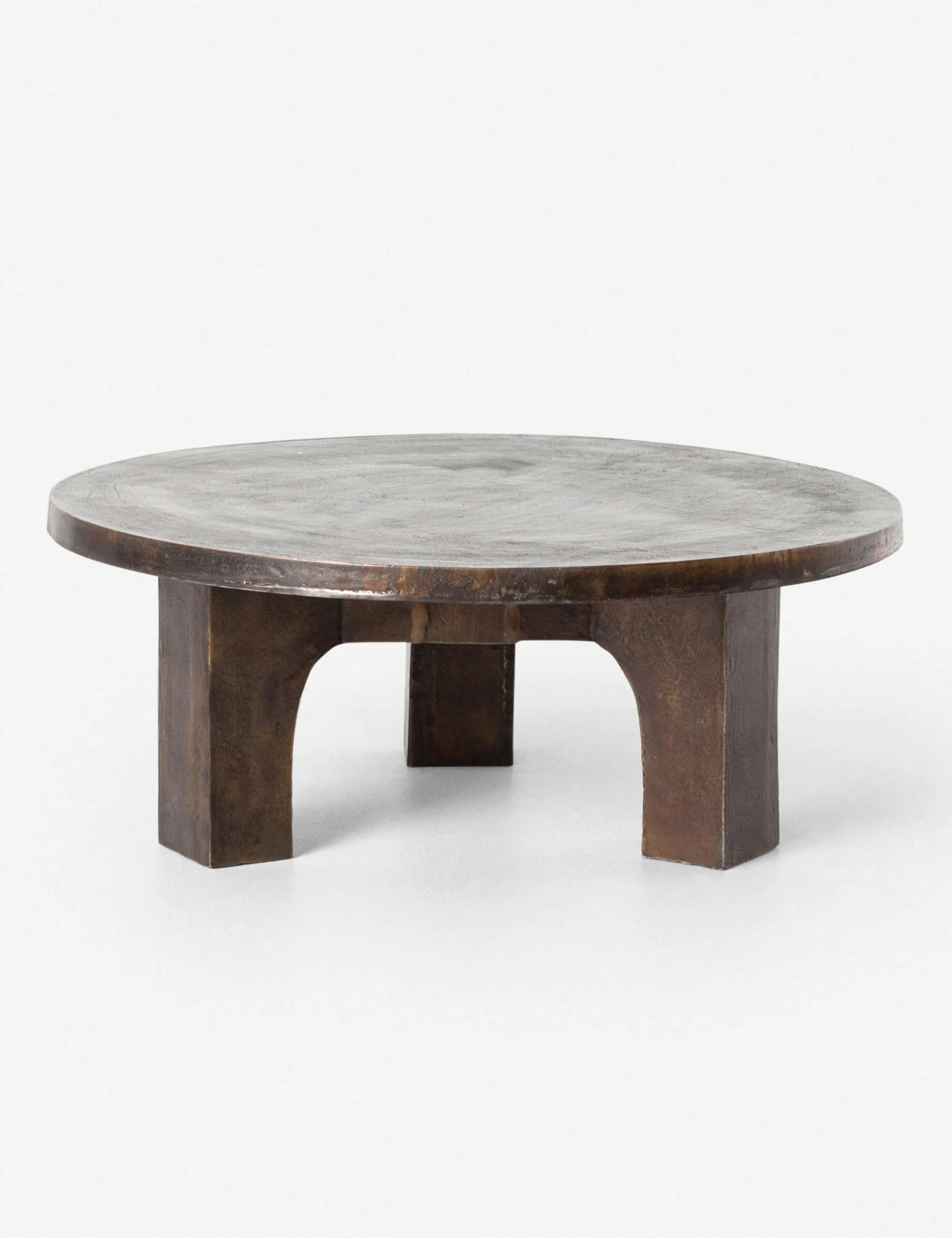 A sturdy, grounded coffee table with Brutalist influence is the perfect piece for your industrialist-modern living room. The angled legs and distressed metal finish offer the ideal focal point to center your space.
