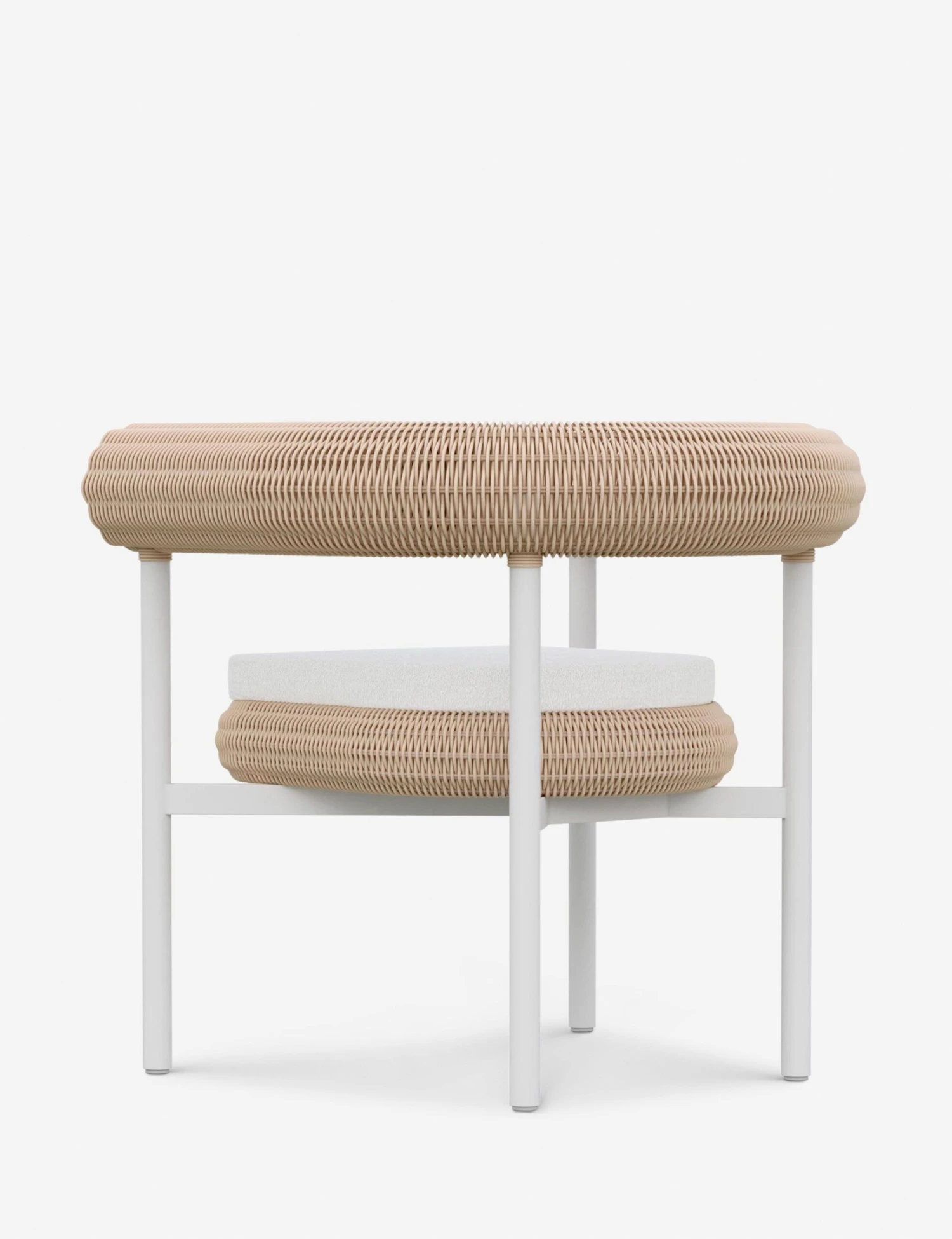 Thoughtfully dynamic and artfully refined—the Castaneda dining chair elevates indoor-outdoor style. The soft-lined silhouette is woven from all-weather wicker and topped with a removable performance cushion to bring plenty of texture with a modern edge. This chic dining seat sets a place for sculptural appeal at your table.