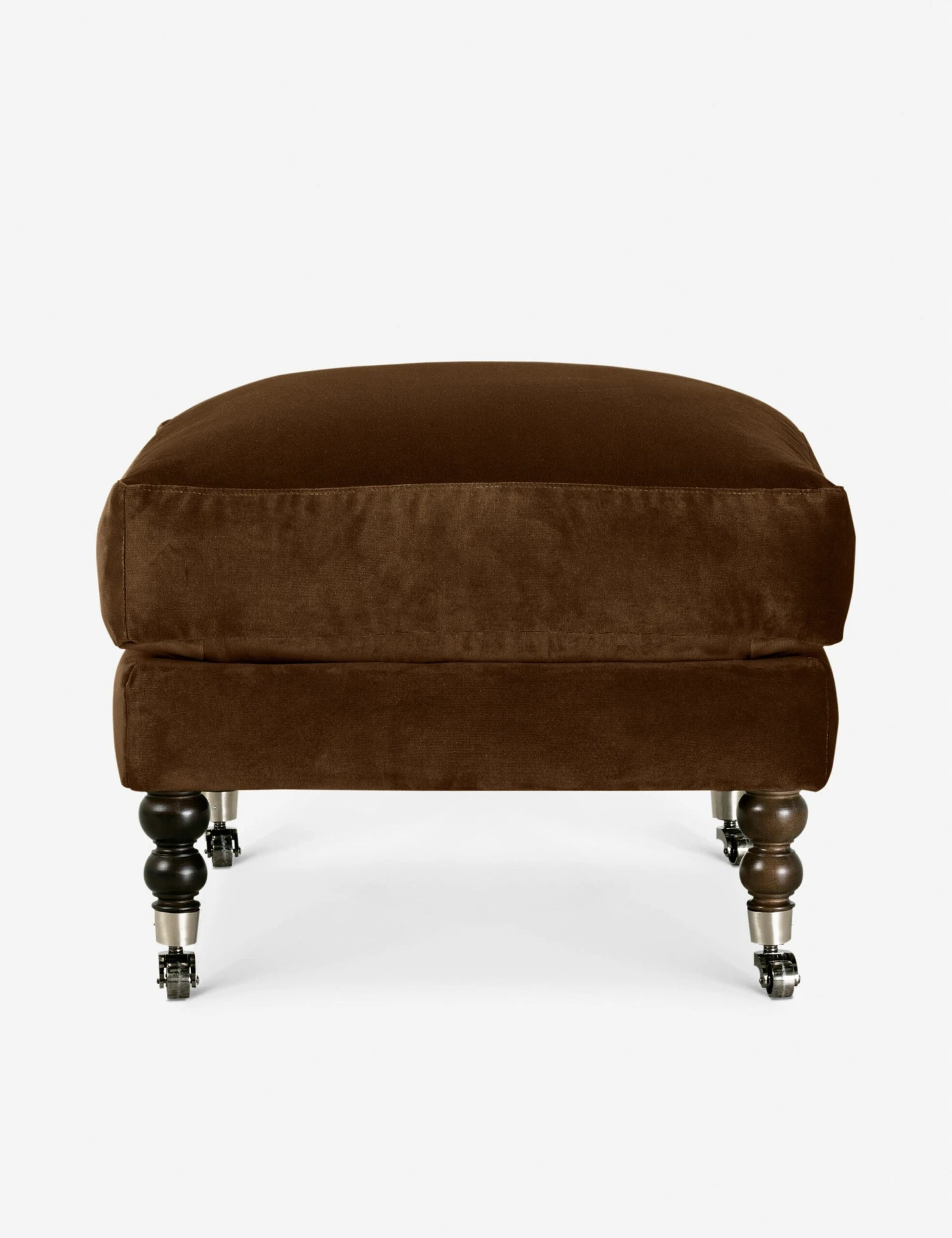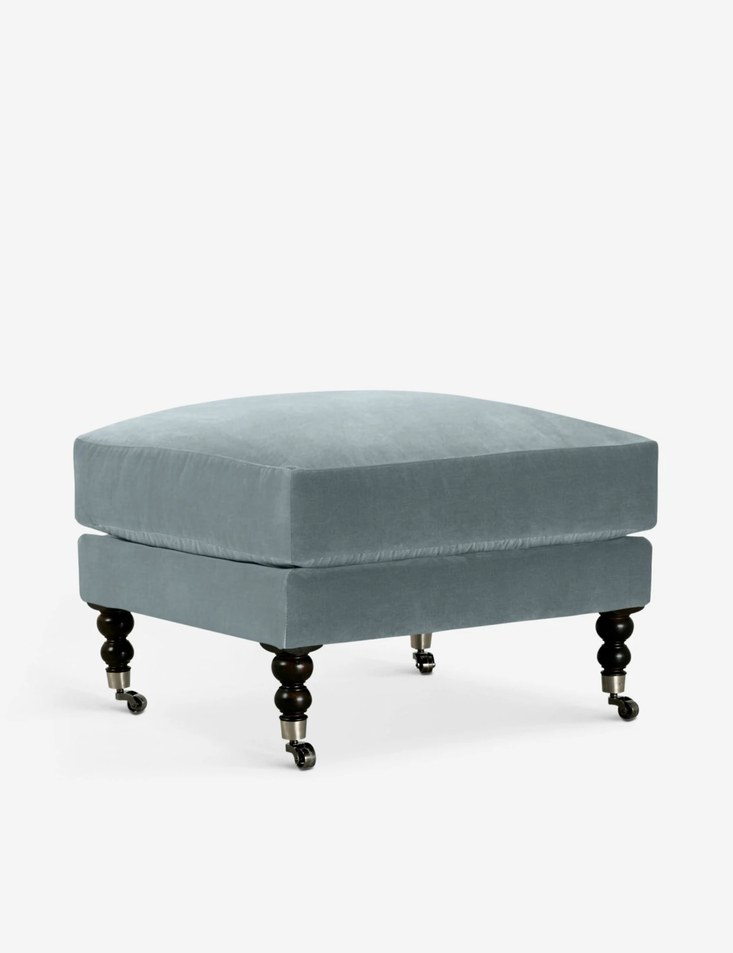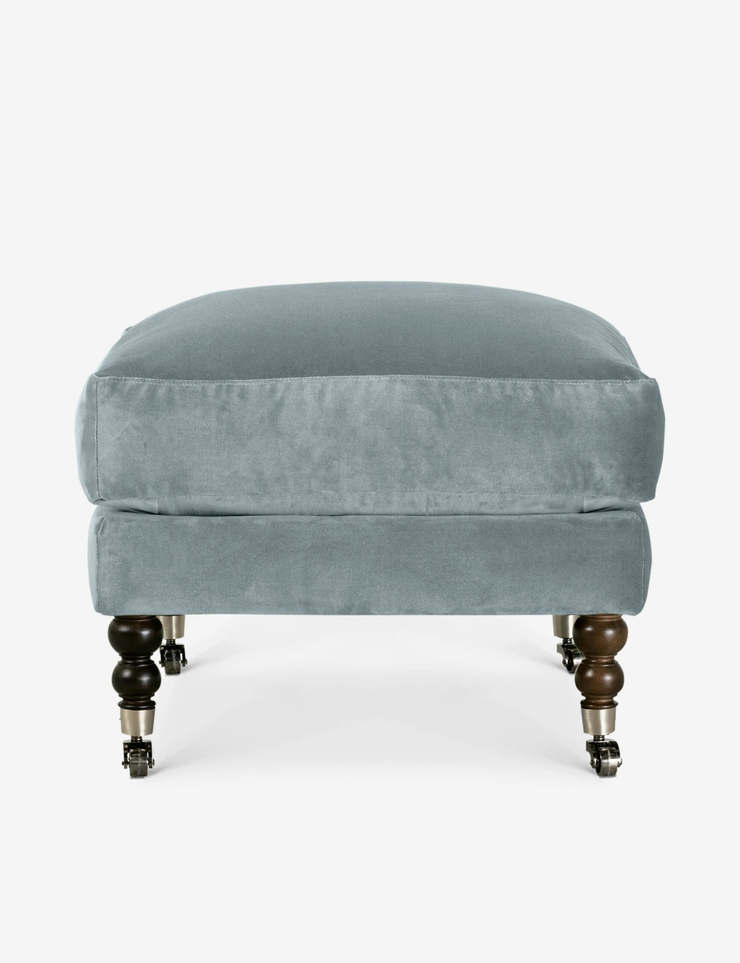 Add a touch of vintage flair to your home office or lounge with this timeless ottoman. Antique styling pairs velvet upholstery with ornate, turned legs with wheels to effortlessly float in the room. Pair this plush footrest with the Fabienne collection or style it as a standout addition to a collected space.