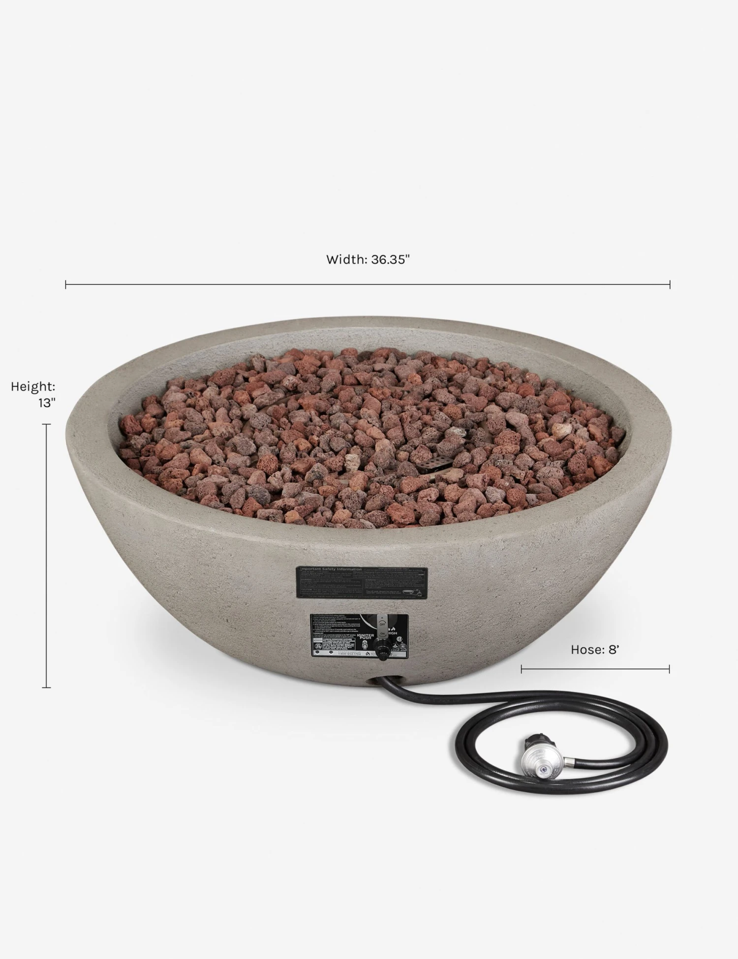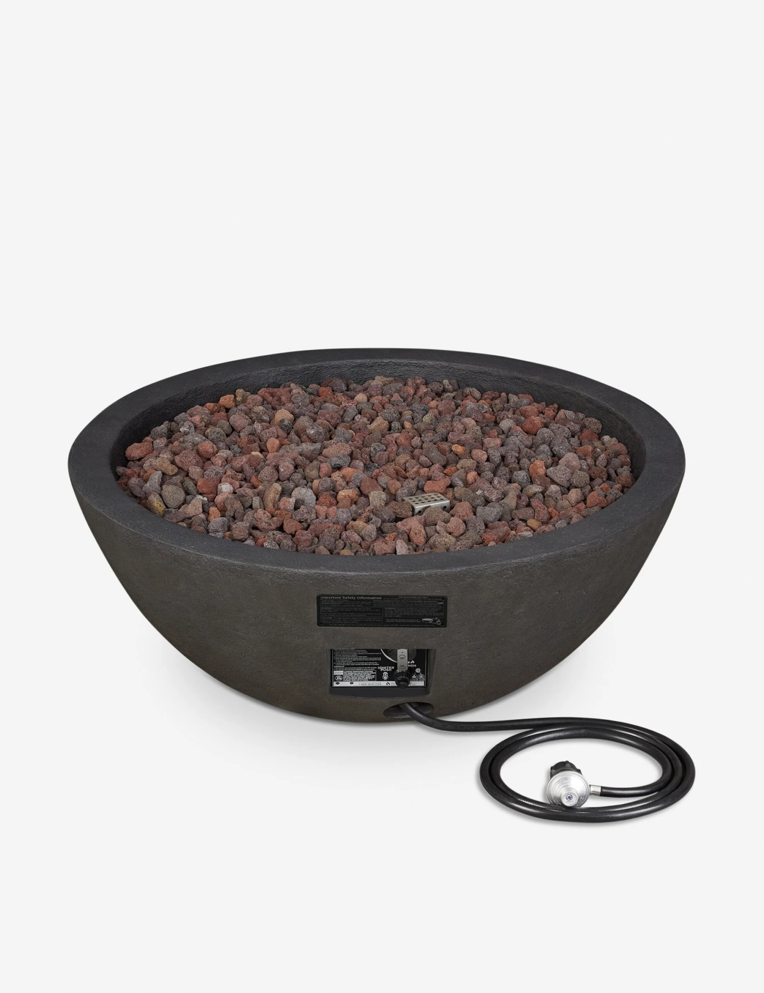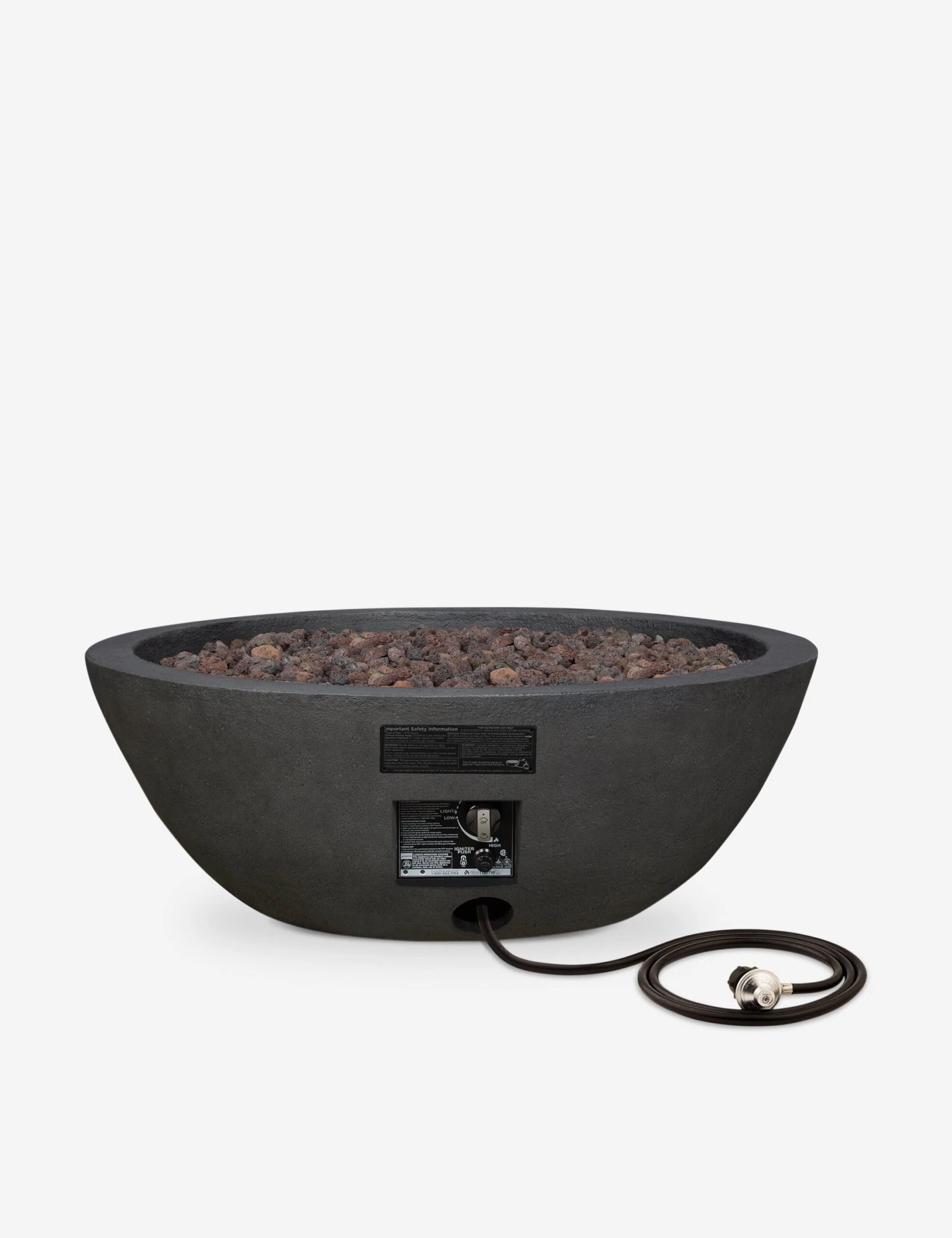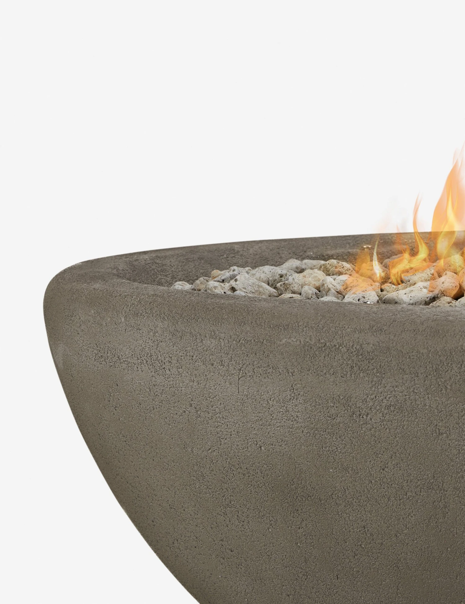 Soft lines and a rustic finish make this fire bowl a warm and stylish focal point for your outdoor space. Gather around with friends or enjoy a quiet night to yourself with this inviting patio feature. Crafted with durable concrete and fitted with a stainless steel burner featuring push-button ignition, this fire table pit offers seamless functionality in a lasting design.