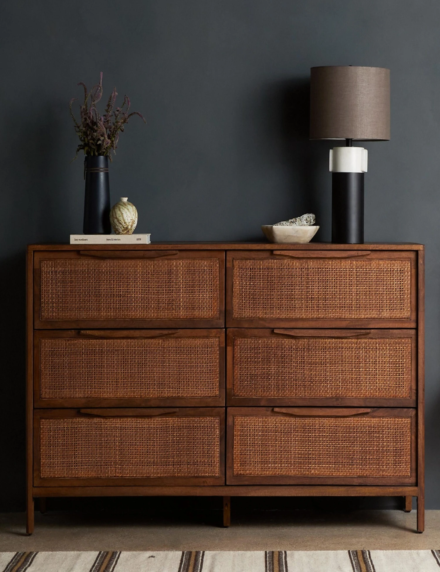 Clean lines and an airy profile bring a cool coastal feel to the Hannah dresser. We love the classic touch of the woven cane front for its natural texture and warmth. This dresser features six drawers for spacious storage—style with a mirror round mirror for a casually chic bedroom vanity.