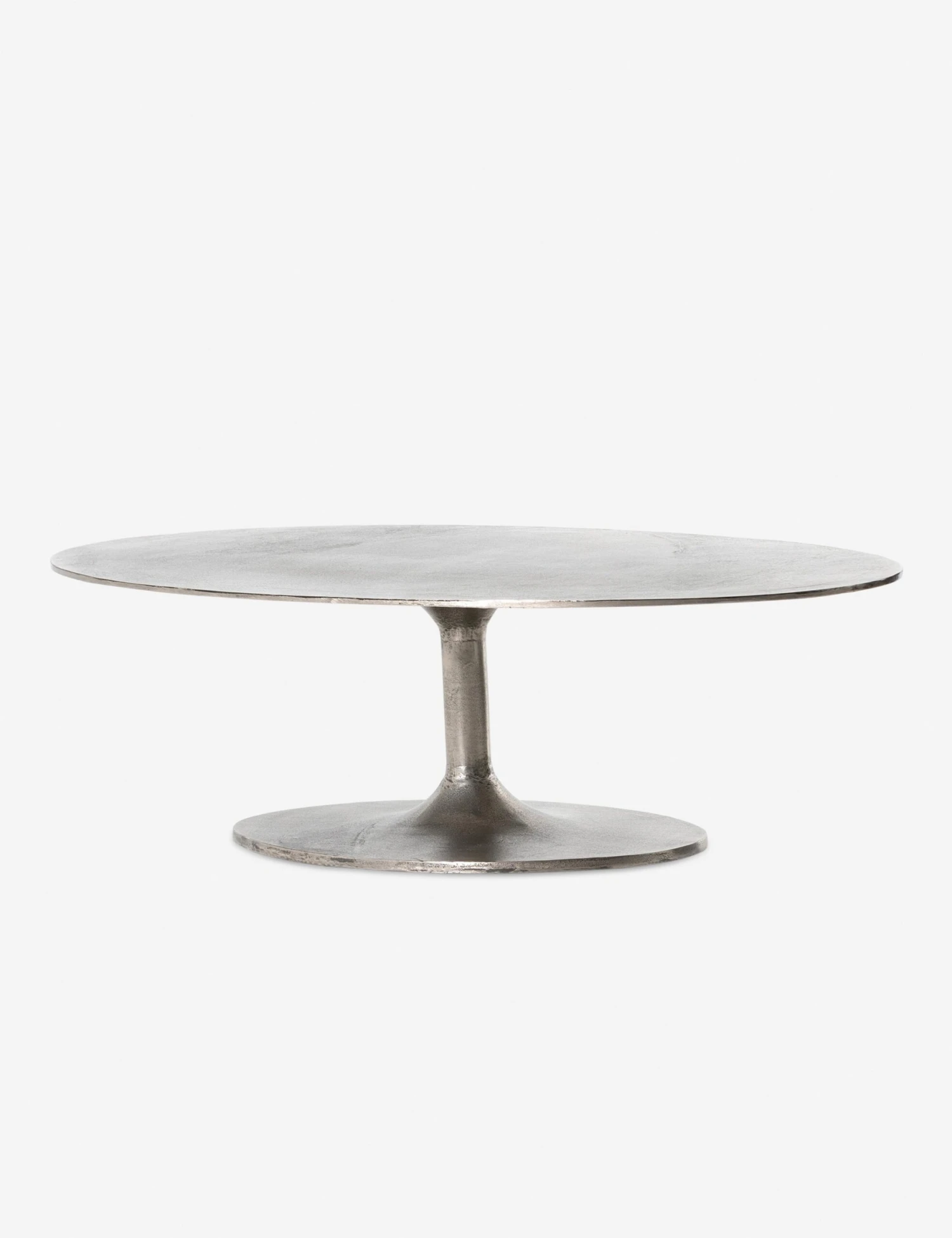 Dramatic lines bring a classic modernist feel to the Inga coffee table. The tulip base and oval top fashion an irresistibly chic silhouette, while the textural cast aluminum is set for style indoors or out. Strike a stylish statement from patio to lounge with this minimalist coffee table design.