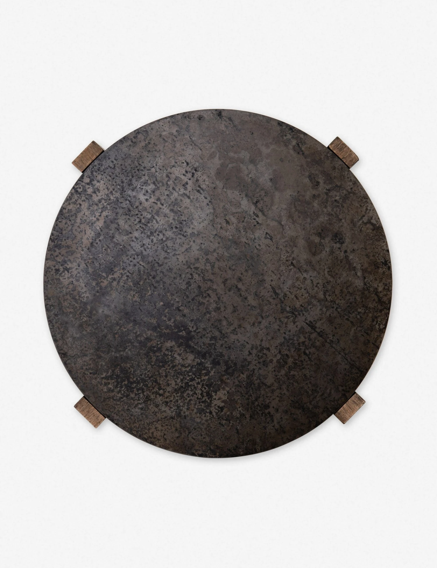 A distinctly modern side table with plenty of character. Designed with a distressed iron drum table, resting in an oak wood frame, this round living room side table mixes organic and industrial materials with effortless brilliance.