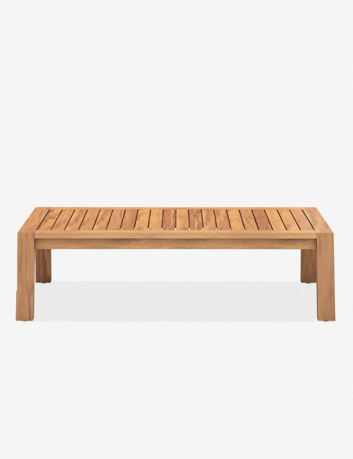 Create a luxe lounging space—indoors and out—with the angular frame and slatted design of this coffee table. A FSC-certified teak frame subtly angles out for added visual interest, so this wood coffee table is ideal for outdoor living spaces, as well as living rooms and sun rooms.