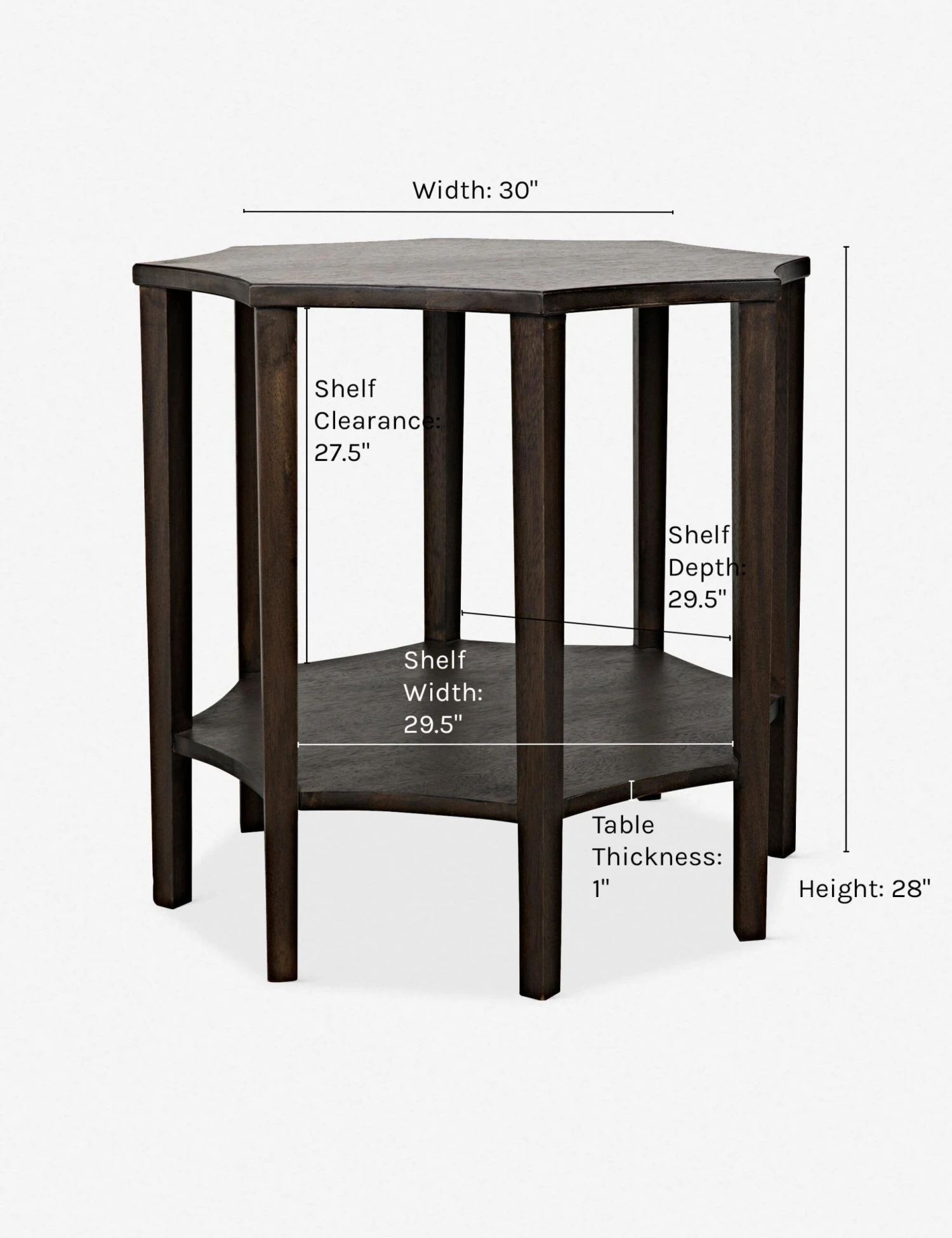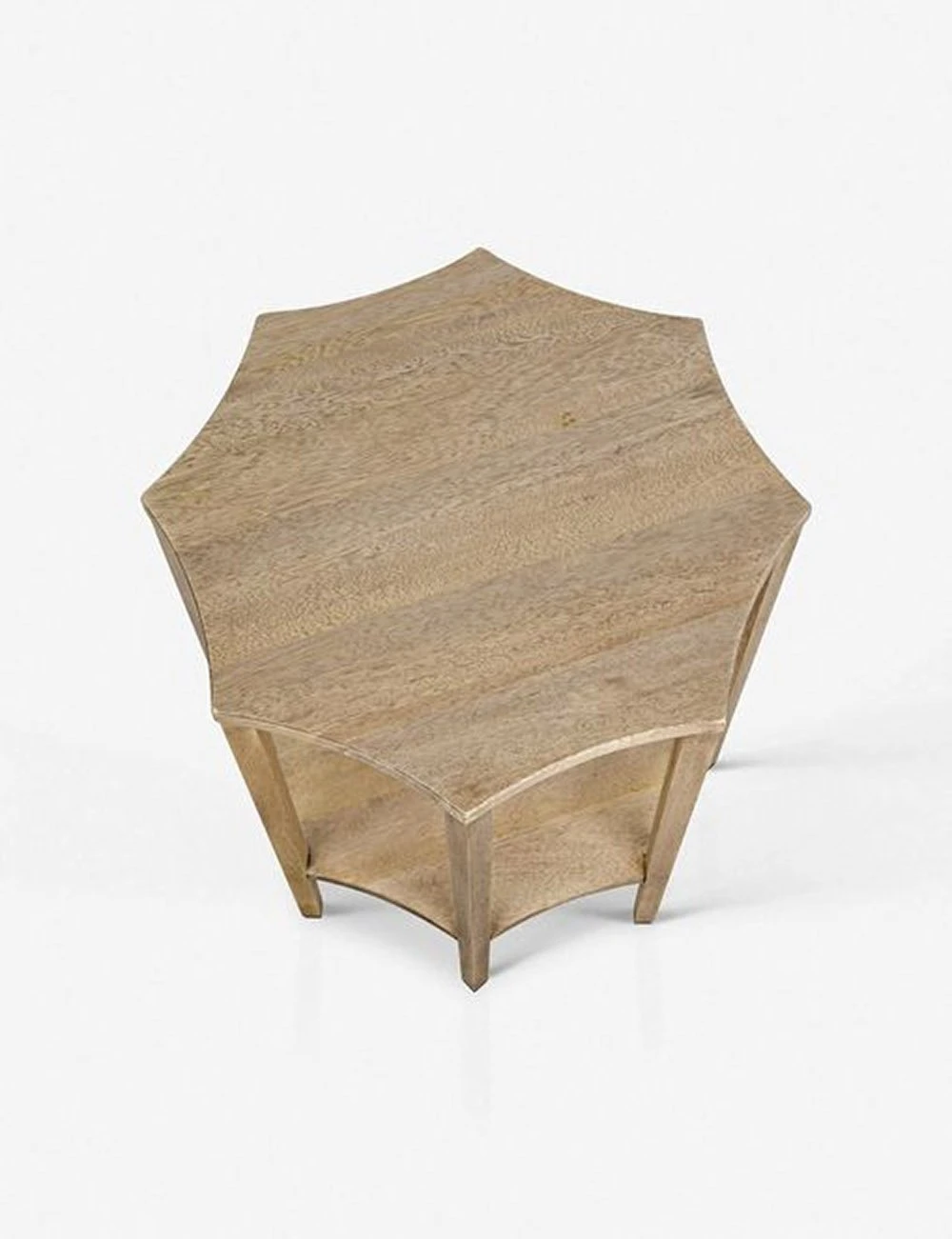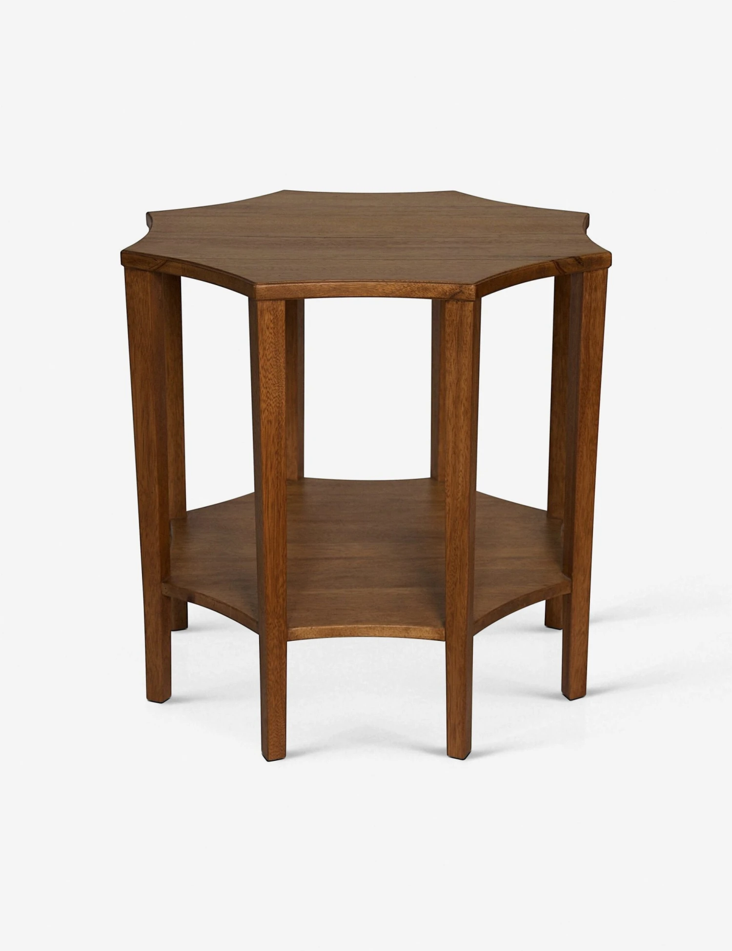 Crafted in a unique octogonal shape from walnut, this piece has a transitional, art deco feel. We love it paired with a velvet-tufted sofa or wing-backed headboard upholstered in a rich jewel tone.