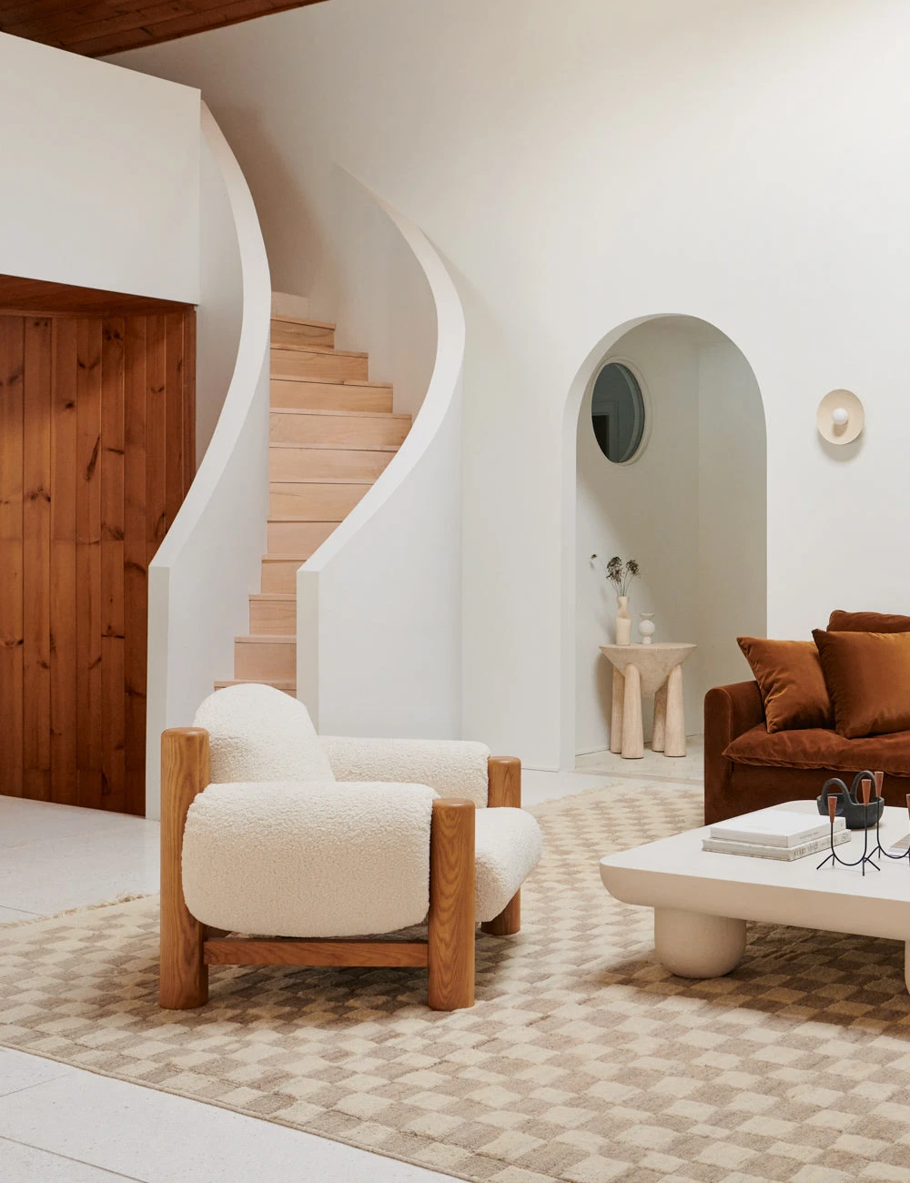 With a thick round show wood frame and super soft faux sherpa upholstery, this lounge chair offers an inviting place to cozy up. Rounded corners soften this accent chair’s look—making it feel at home in a living room, nursery, or study. This piece is from our exclusive Sarah Sherman Samuel collaboration and features all the trademarks of her warm, edited style.