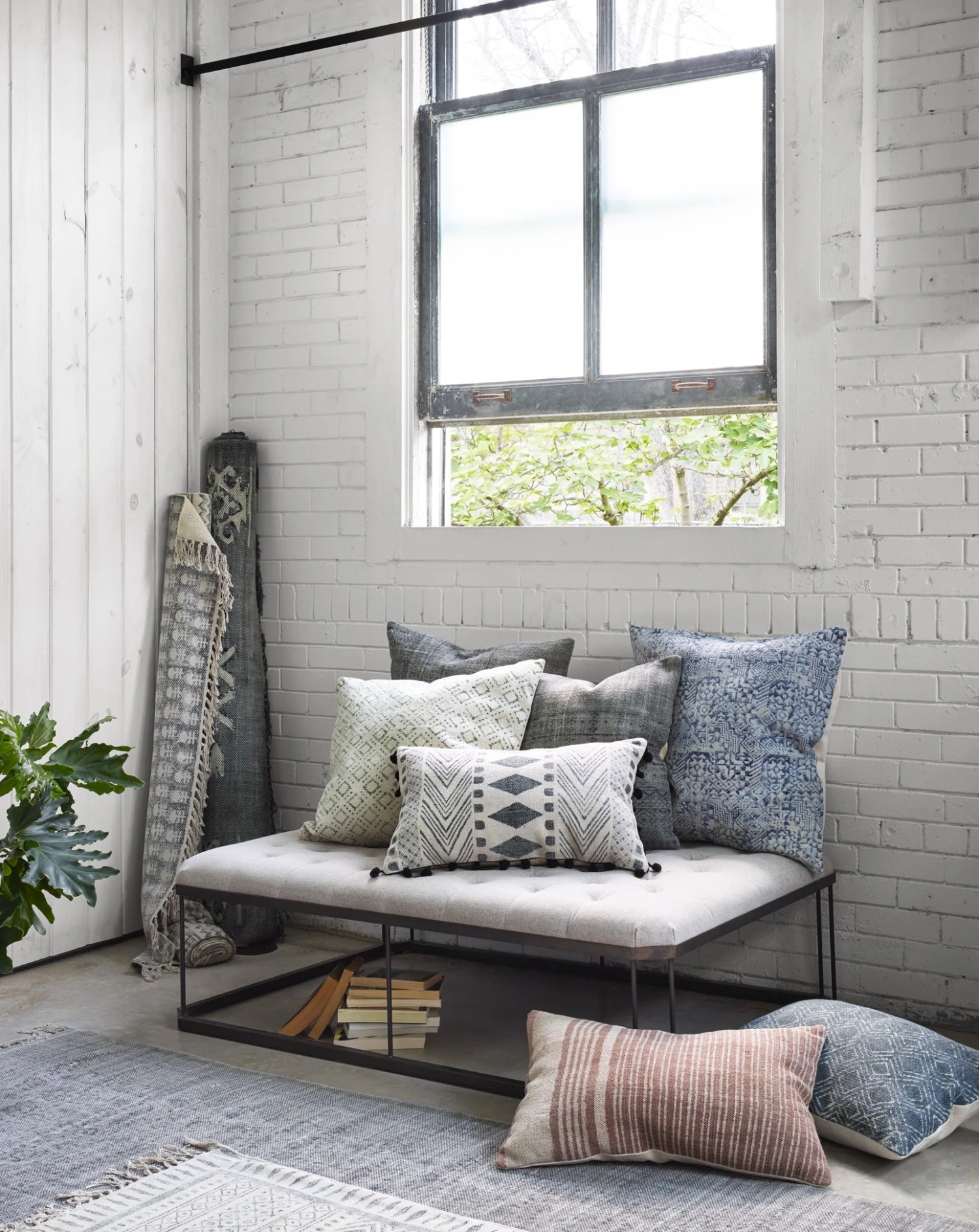 Perfectly balancing timeless luxury and industrial aesthetics, this tufted ottoman is the ultimate statement in cool, modern living rooms.