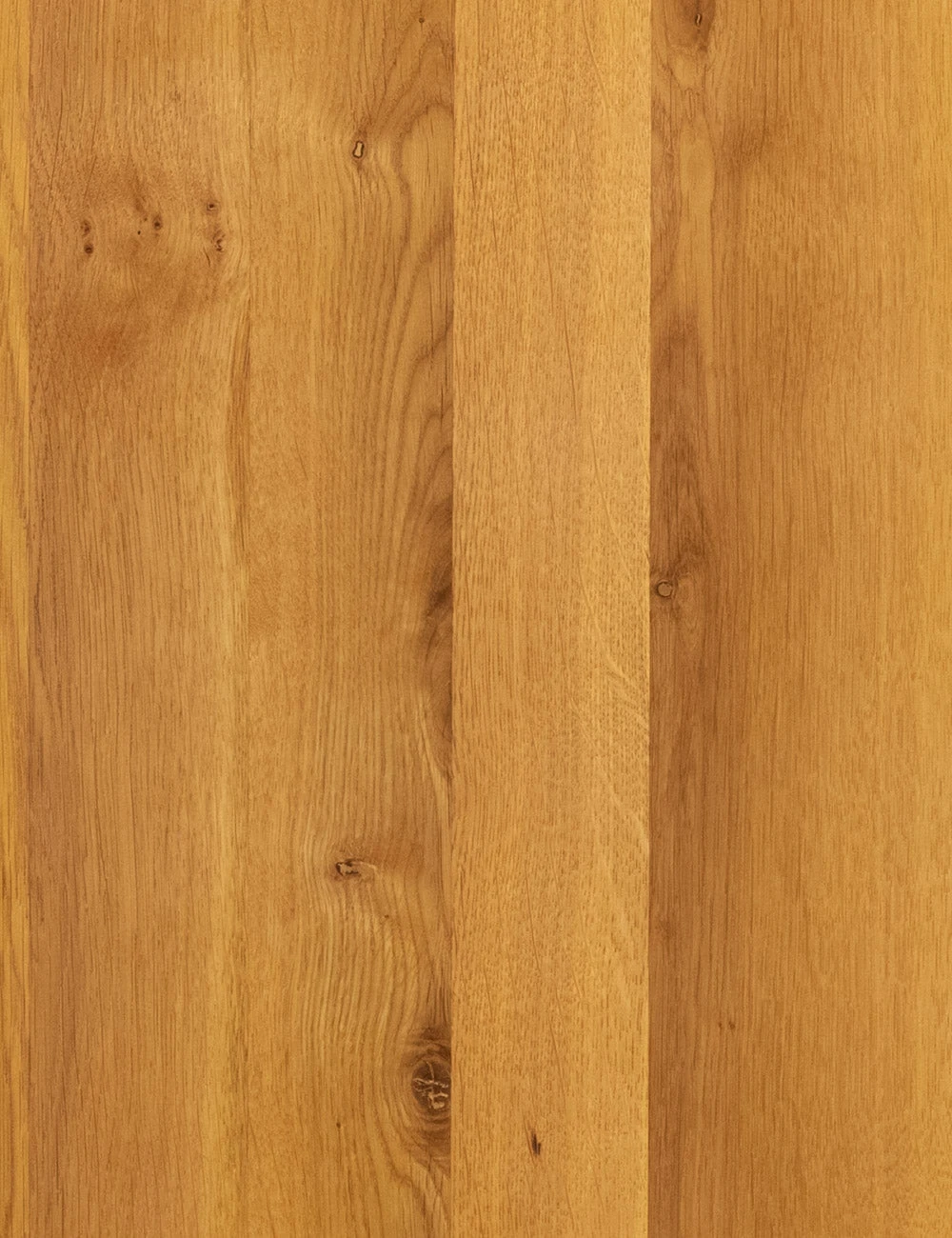 Combining streamlined design and retro details, the Karma collection is ideal for modern spaces. This sideboard features cutout details, natural oak variations and thin brass legs.