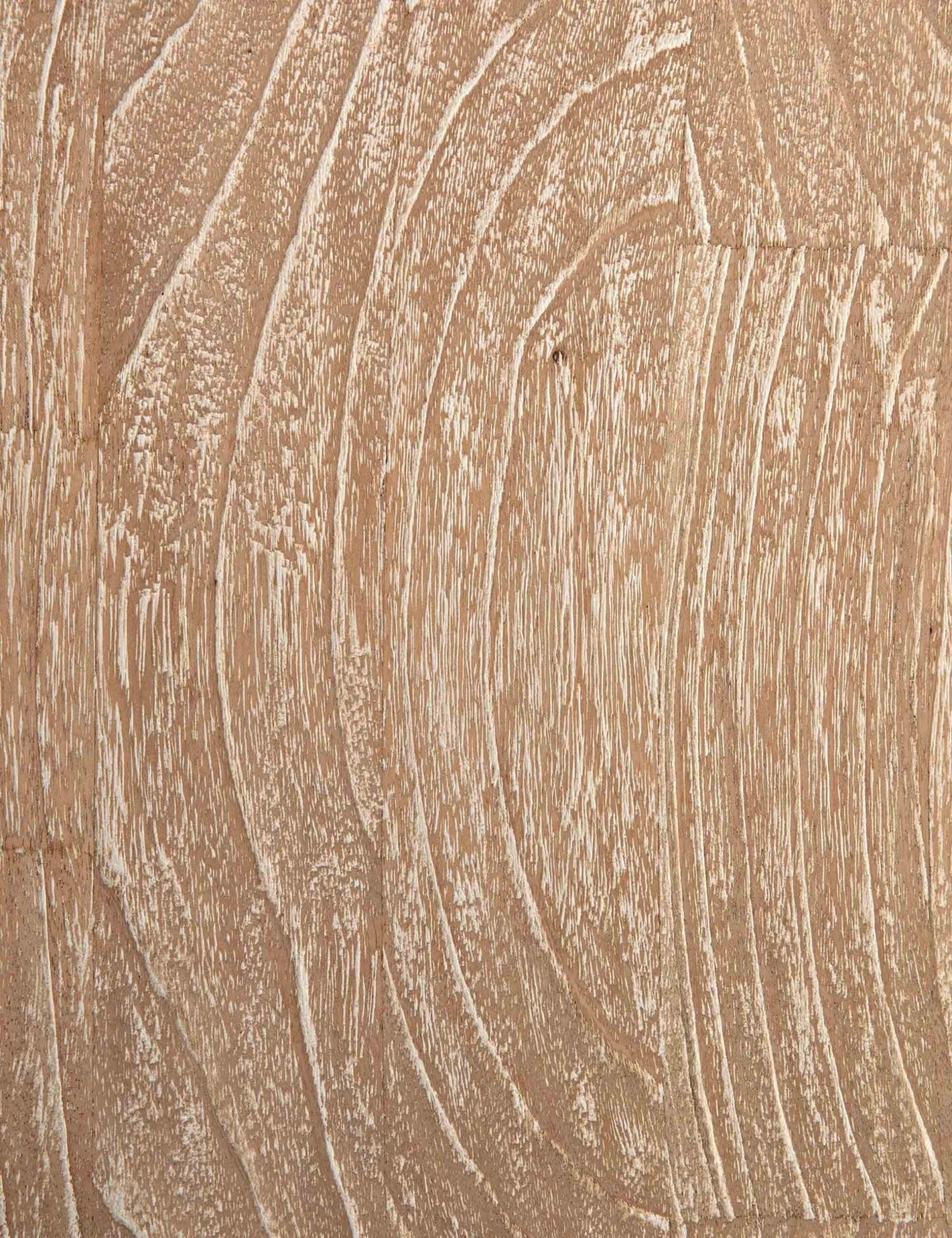 Doubling as extra seating and art, this sculptural bench offers a global appeal thanks to peaked edges and dramatic curves in a distressed Mindi wood finish.