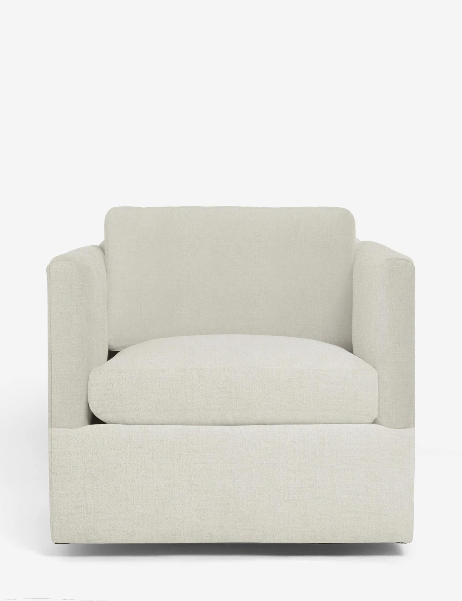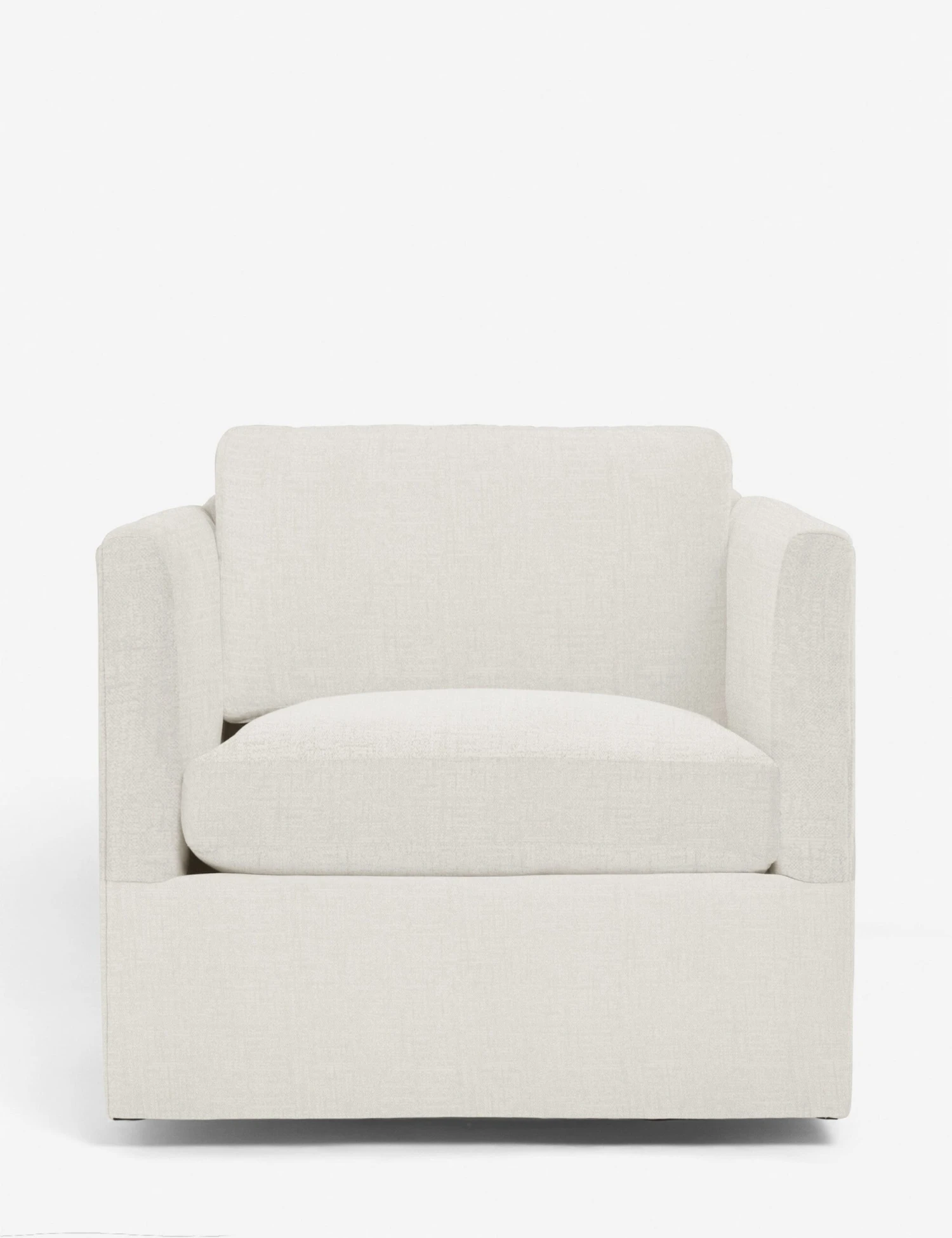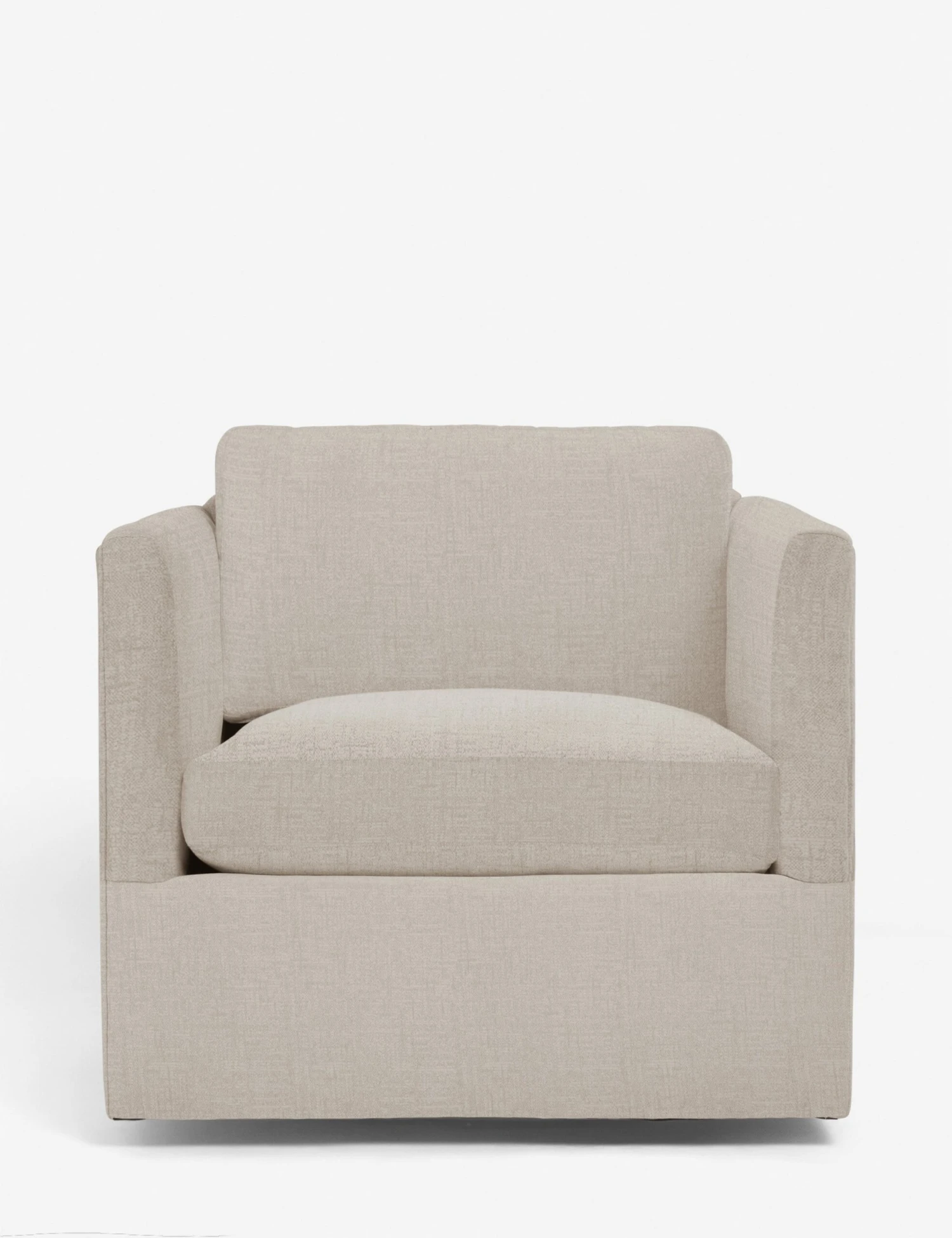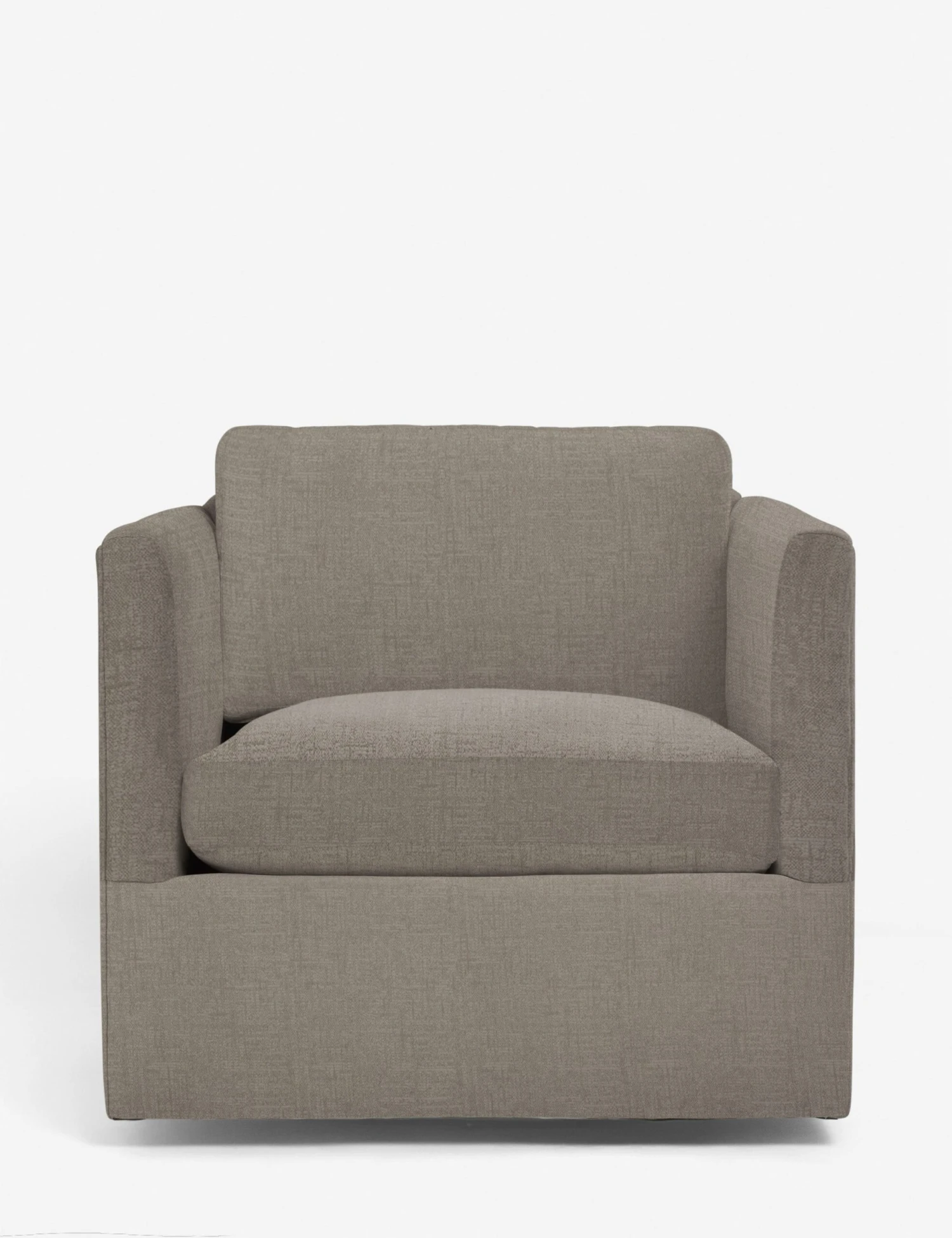 Crisp upholstery accentuates the clean lines of this swivel chair. Available in a beautiful selection of earth-toned fabrics the deep seat and shelter-style design offer a refined look that complements its swivel functionality. Style this accent chair with some luxe throws and sculptural side tables to elevate its soft visual appeal.