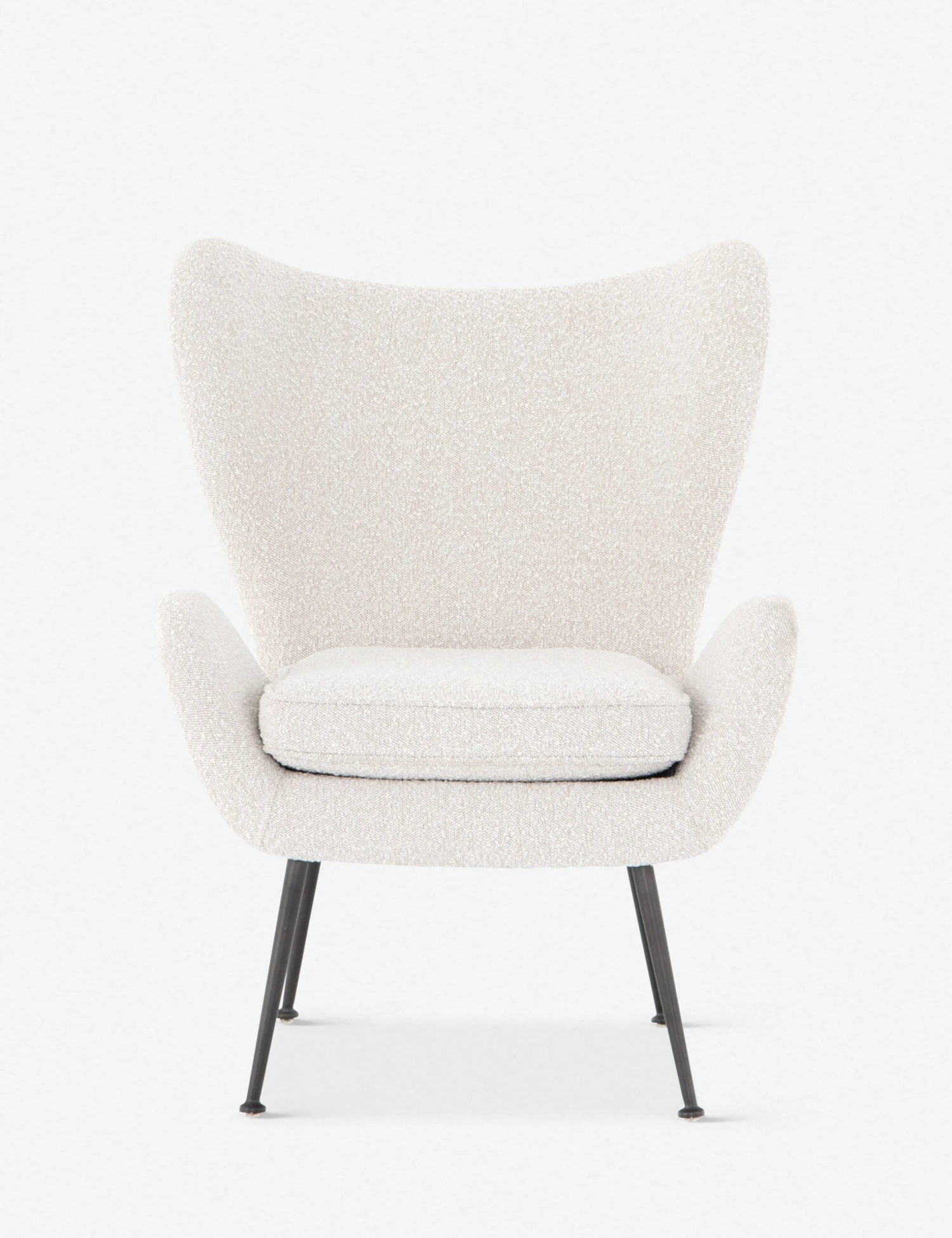 Taking its inspiration from European Art Deco style, this occasional chair is an artful and textured accent for your space. A traditional wing chair silhouette gets a modern update with slimmer, more exaggerated lines, iron hairpin legs, and a textured cream boucle upholstery. This accent chair is perfect when creating a reading nook in your living room or bedroom.