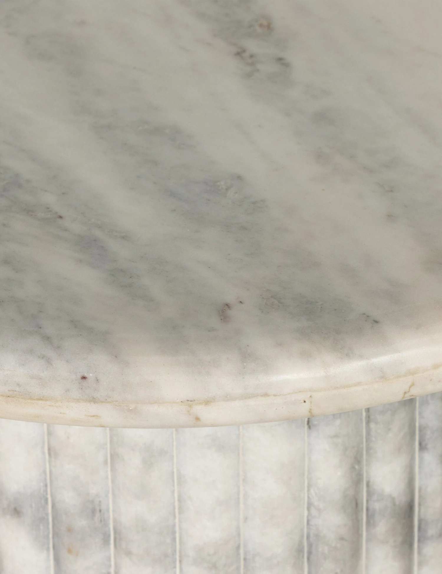 Set a foundation for elegant design with a solid marble side table. This round end table cuts a polished silhouette while fluting on the base adds drama and texture to the mineral-veined stone. Each piece of marble is unique, offering sophistication with a singular touch for your living room.