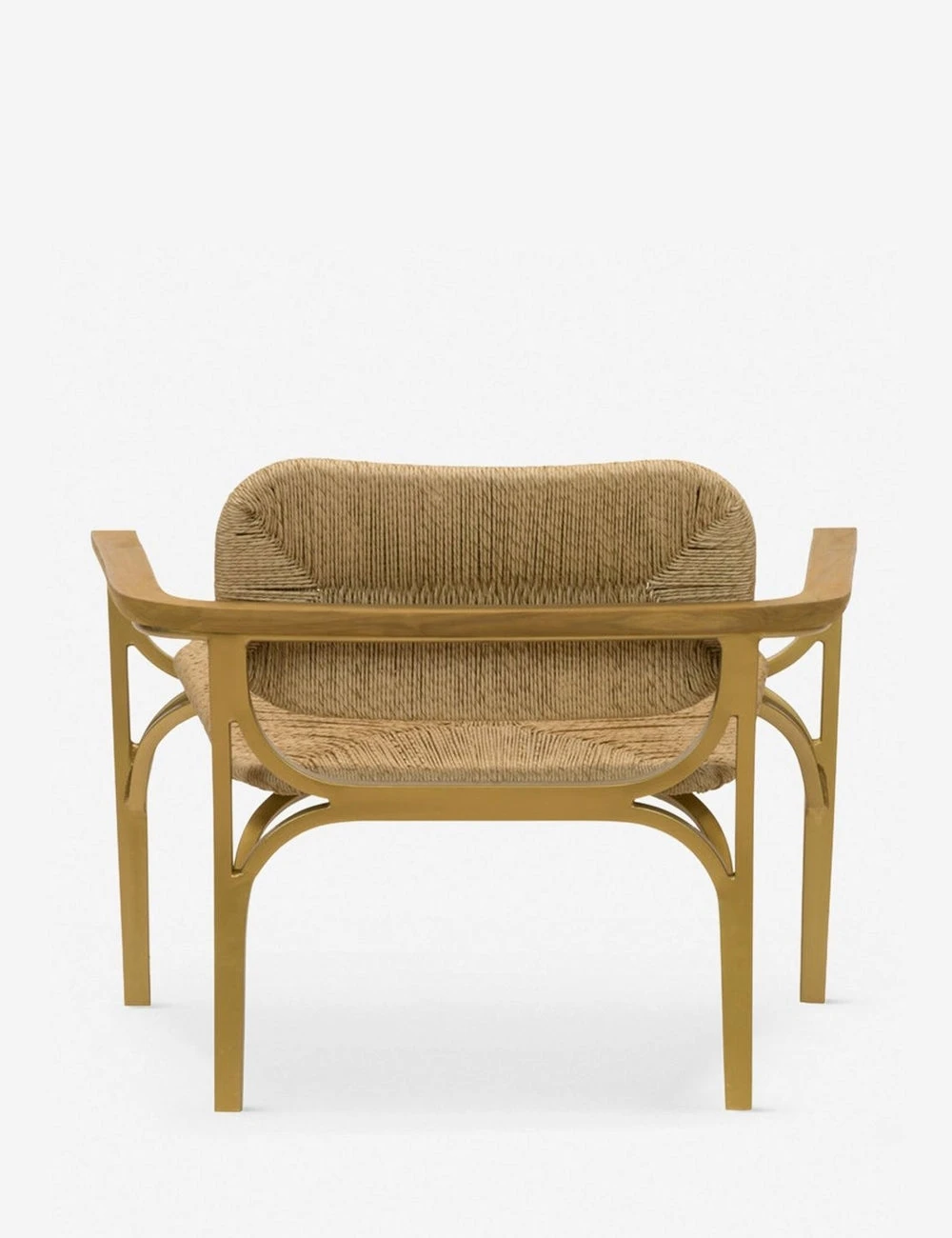 Constructed with hand-carved teak, synthetic twisted hyacinth and brass-capped hardware, the Kelmscott lounge chair receives influence from Kelmscott Manor- Arts & Crafts textile designer William Morris’s idyllic countryside home in Oxfordshire England- and is a contemporary reenvision of Morris & Co.’s most recognizable design created in the late 19th century, the Rush Sussex Chair. Inspired from Morris’s vision of furniture that strongly highlights form and craftsmanship, this piece will bring enduring charm to the room. Can be used in both indoor and outdoor spaces.