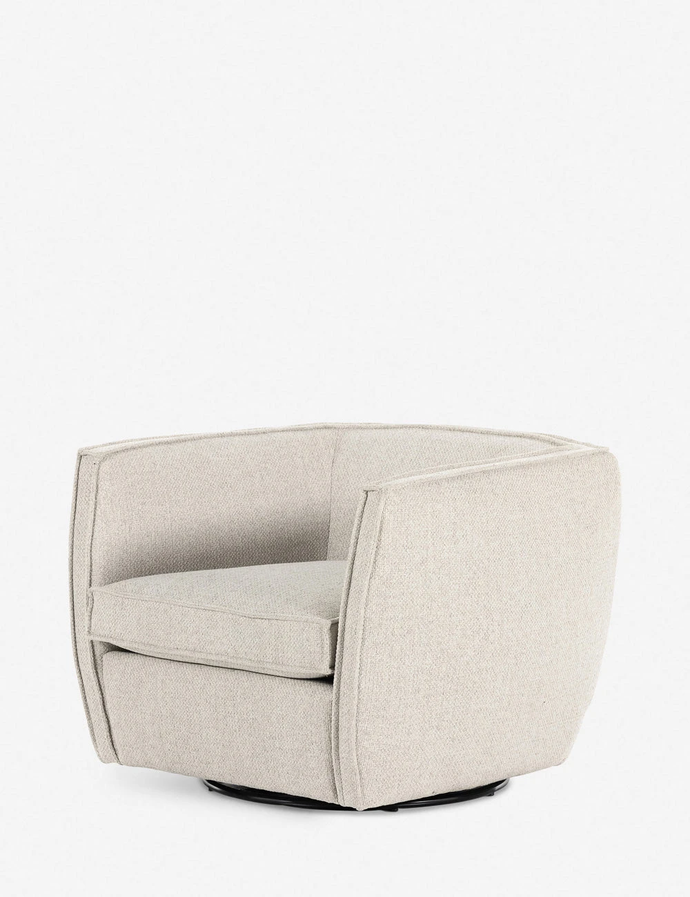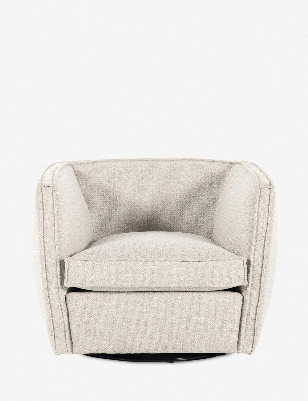 Sustainable fibers and a swivel base spark dynamic appeal in this barrel chair design. With its flange trim and deep seat, this cozy accent chair offers chic flair for your home office or bedroom reading nook.