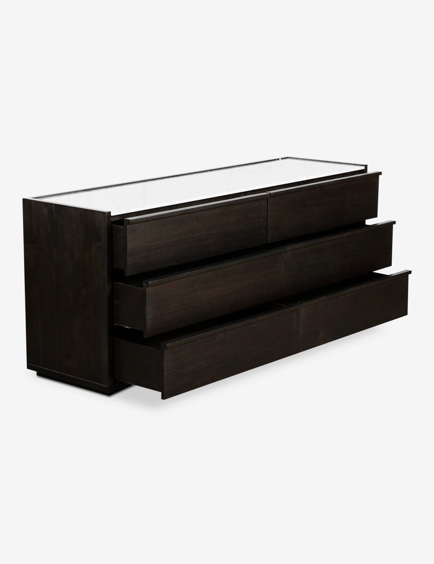 Bring the cool touch of white marble to your bedroom with this luxe dresser. Clad in a dark acacia veneer to offer tonal contrast to its stone top, this wide dresser features six spacious drawers for a standout storage piece that will elevate your bedroom look.