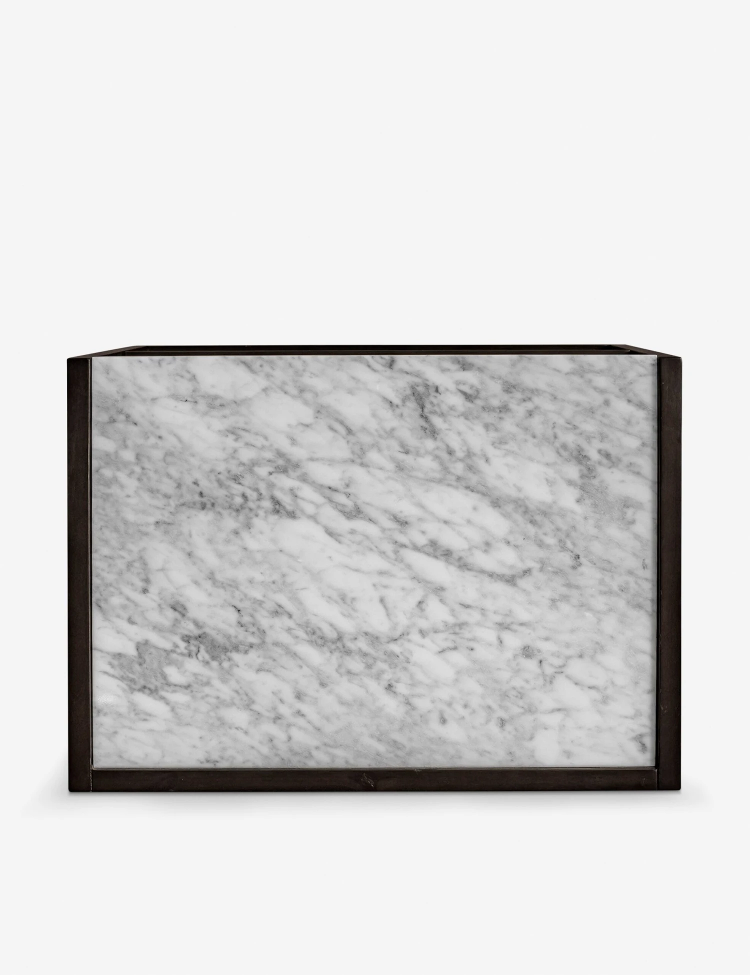 Bring the cool touch of white marble to your bedroom with this luxe nightstand. Clad in a dark acacia veneer to offer tonal contrast to its stone top, this bedside table features two deep drawers for a practical accent that will elevate your bedroom space.