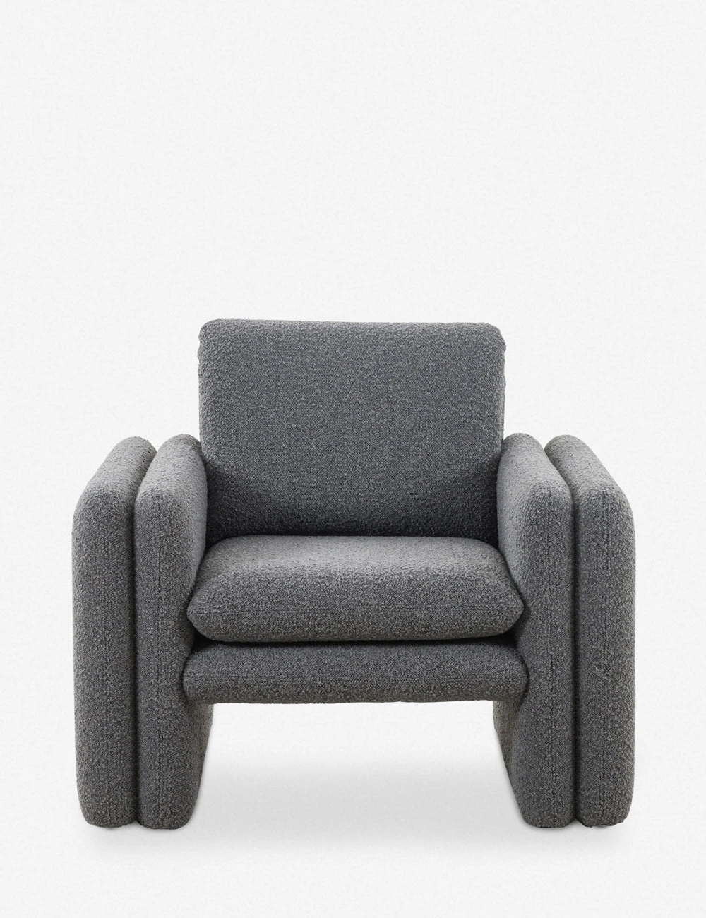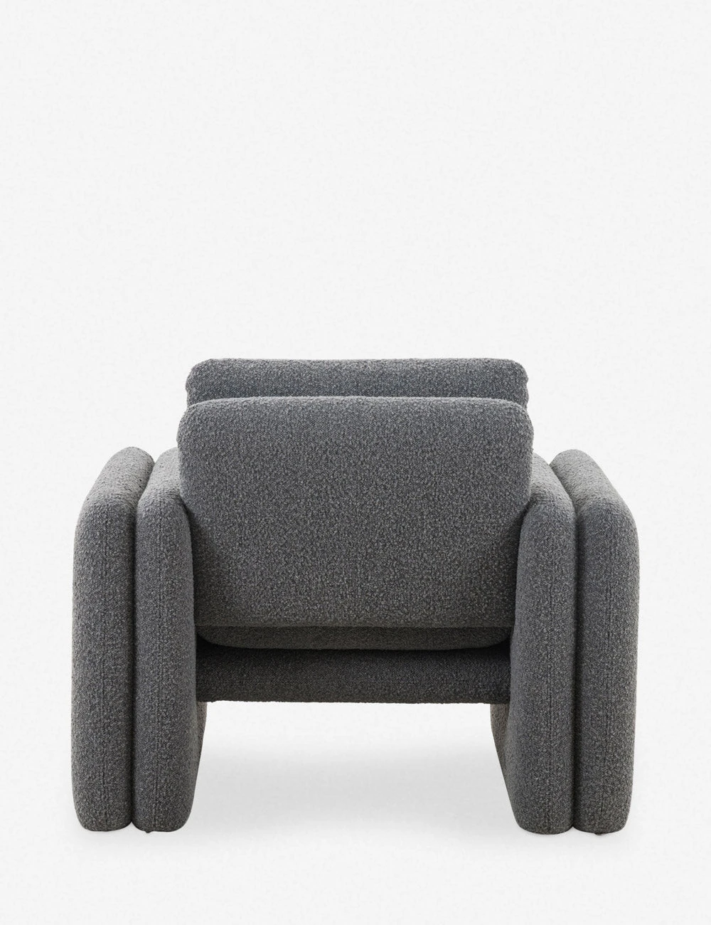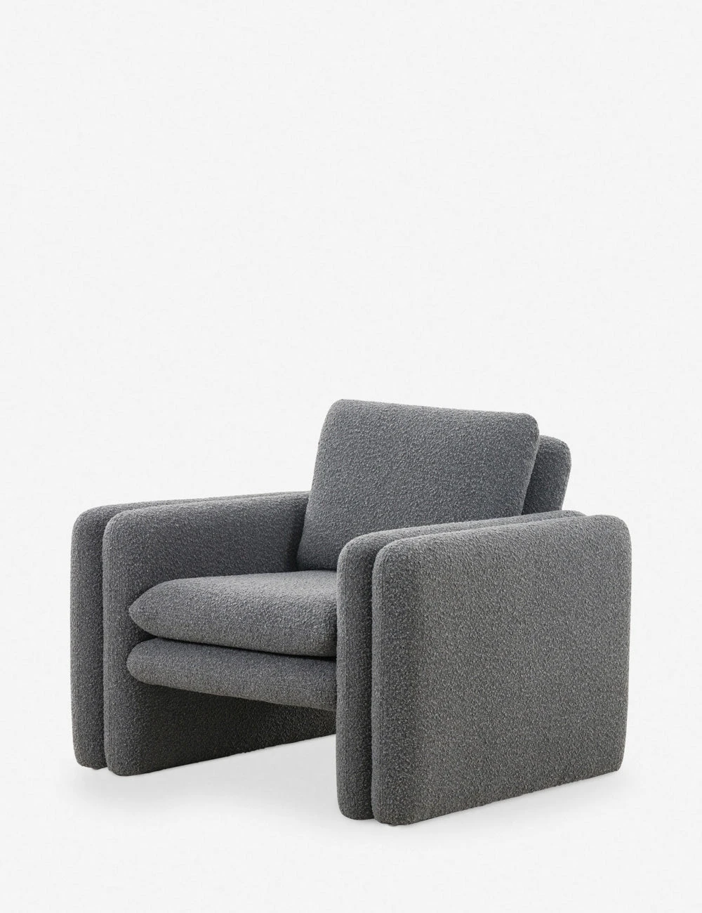 Bring a retro touch to your look with this double layered accent chair. The ultra soft upholstery and plush cushions are the perfect complement to this occasional chair’s clean geometric design. Pair this chair with other sculptural elements for a cozy yet modern lounge feel.