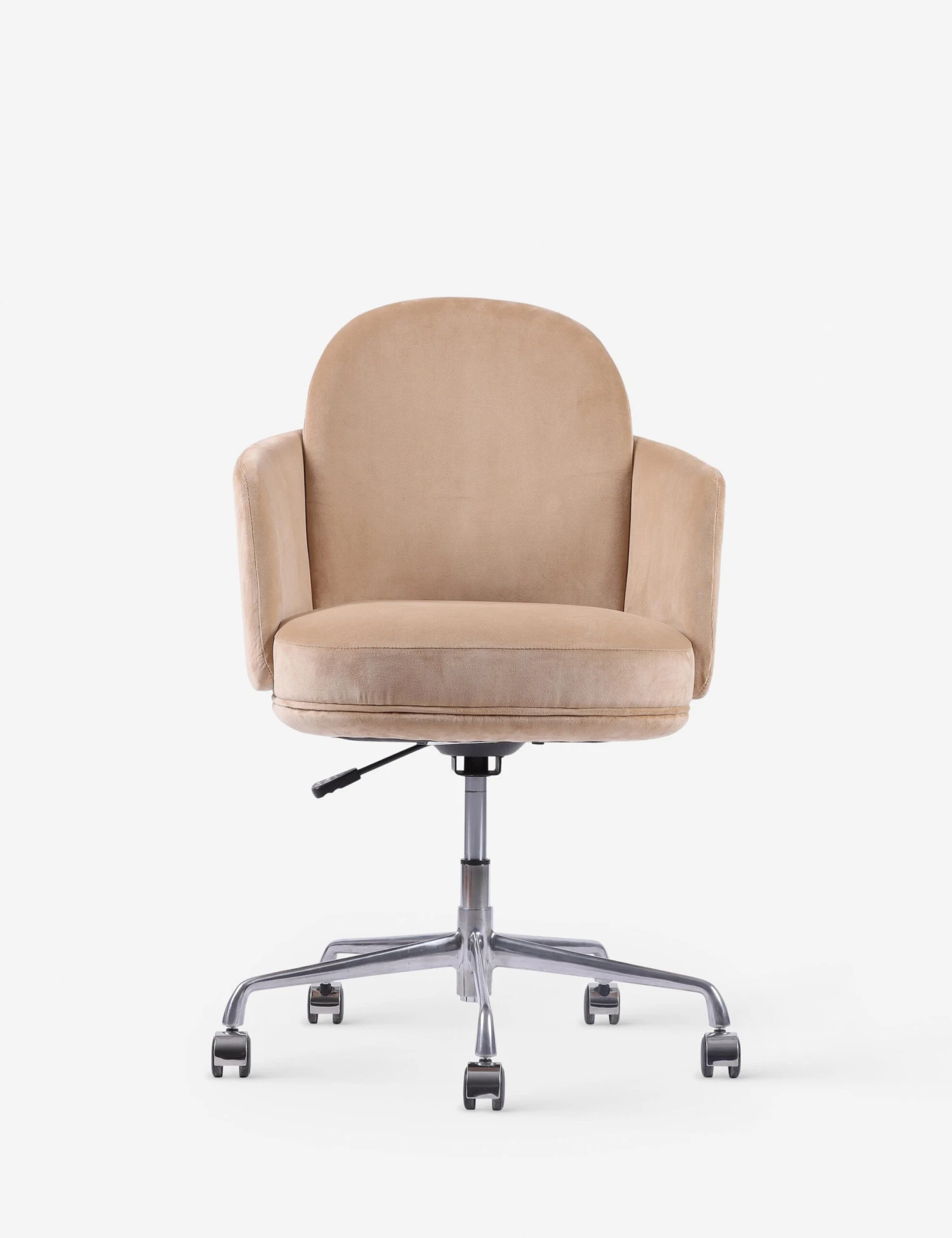 Elevate your home office style with this chic desk chair. Pairing soft lines and velvet upholstery with an adjustable base on casters, this chair offers comfort and elegance with a dynamic design for a functional workspace.