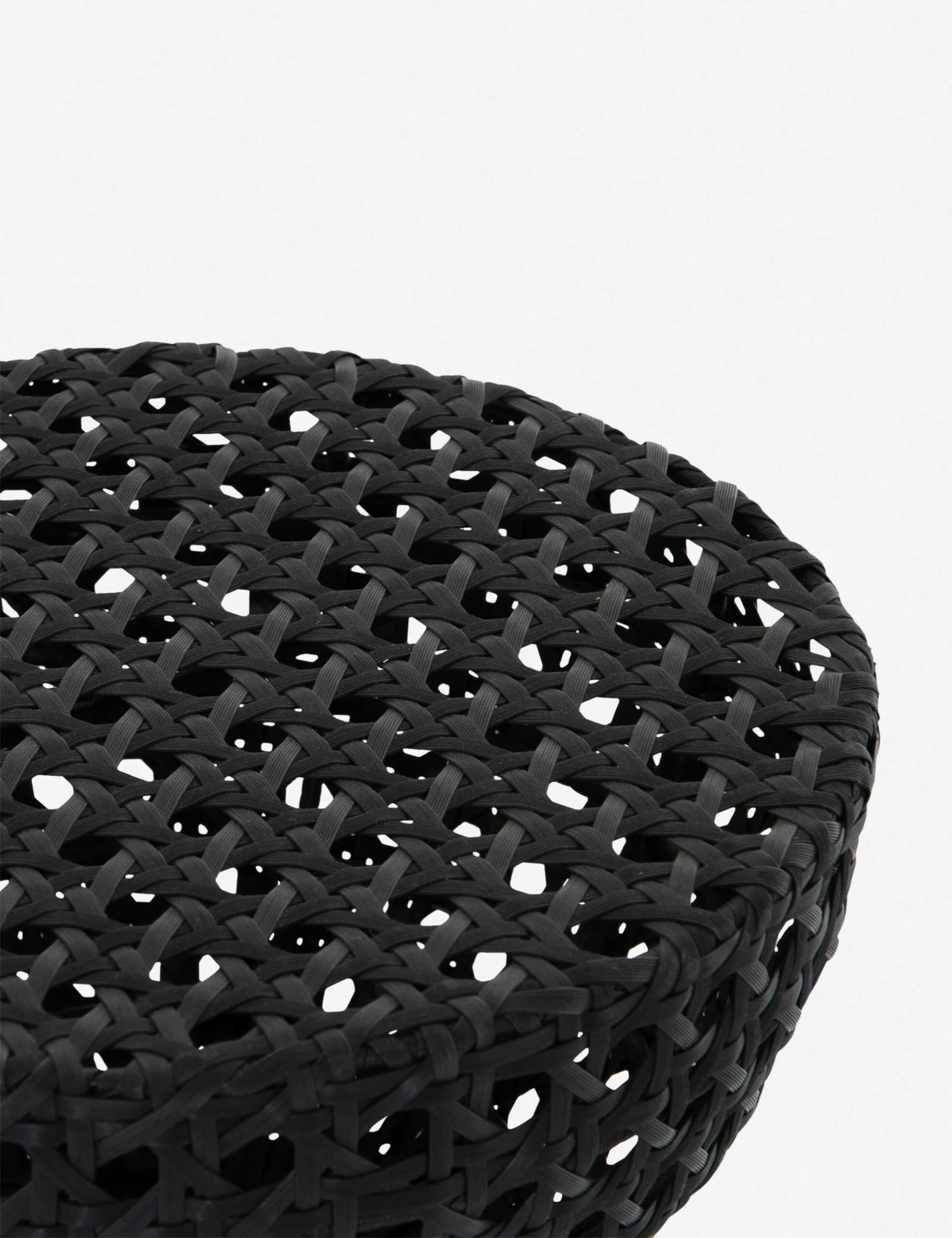 Timeless shape meets modern design in this airy drum-shaped side table. Whether finishing your look or in search of new inspiration, this end table offers a tone-setting accent with versatile potential. Its hourglass silhouette features an all-weather synthetic weave for a texture-forward appeal you can style from a studio to a patio.