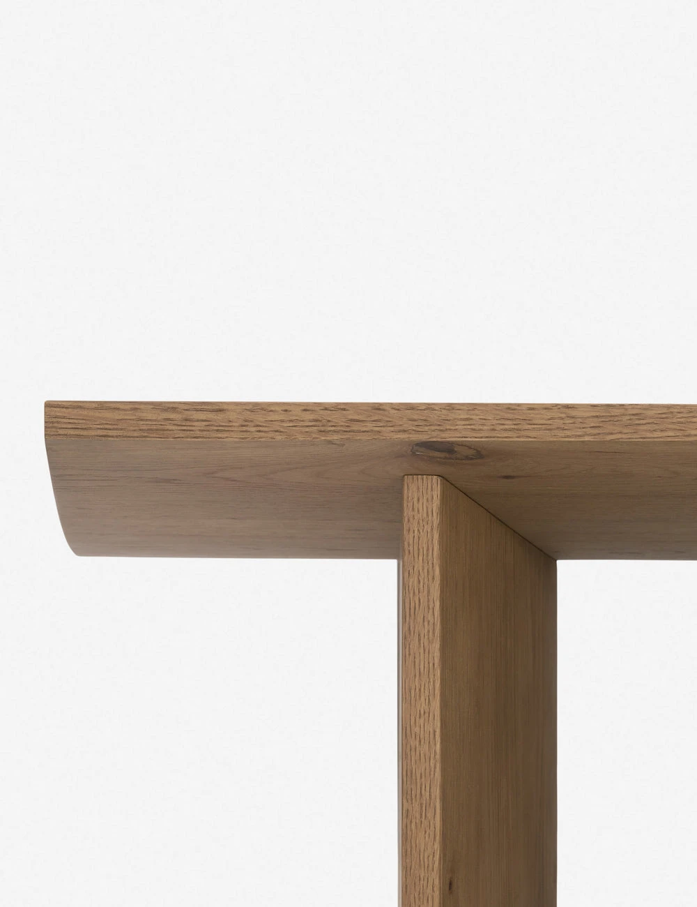 Casting a clean, cut silhouette, this coffee table design is softened by a curved-bottom tabletop sturdily set on two flat, solid legs. Clad in a beautiful oak veneer for natural grain appeal, we love the warm and refined tone this wood coffee table offers to the center of a room.