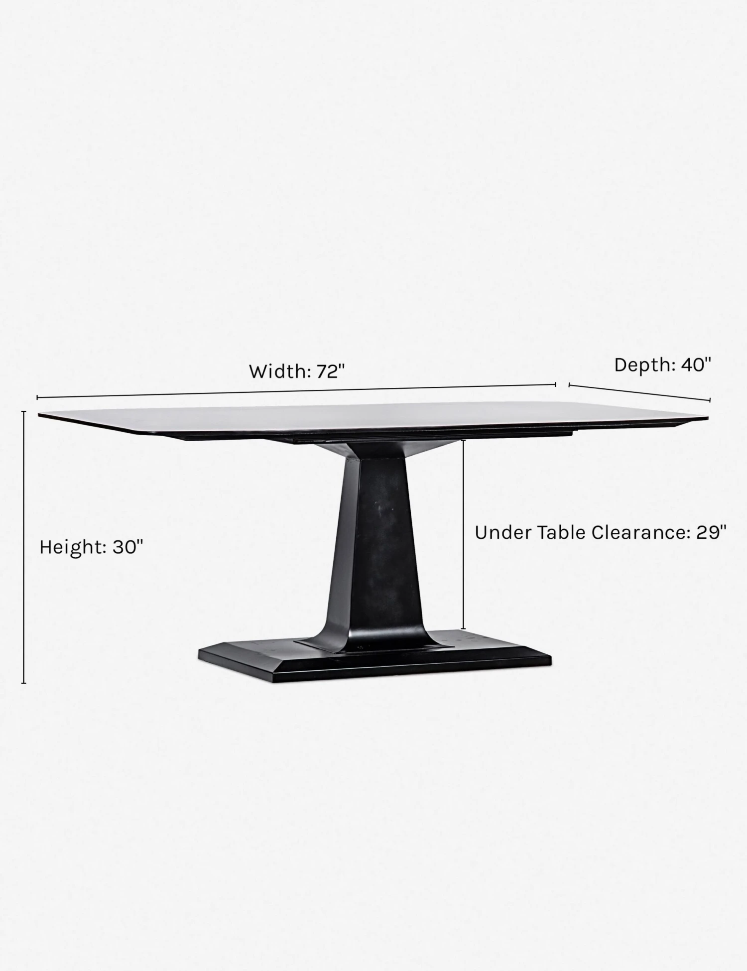 The sleek black finish on this table adds visually striking drama to a dining room. We love the slight nod toward traditional design with small detailing on the pedestal, but clean lines still keep it feeling modern. Dress it up with brass accents and elegant linens for a beautifully polished and elevated look.
