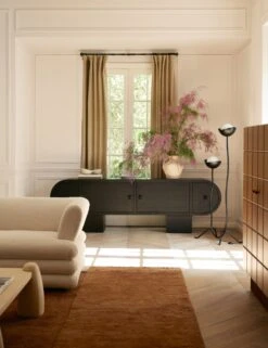 Wavy lines give this accent chair a distinctive profile to match its barrel back, timeless woodwork quality, and sleek upholstered seat. We love this small chair as an accent in a living room or bedroom or as a vanity stool. This piece is from our exclusive Sarah Sherman Samuel collaboration and features all the trademarks of her warm, edited style.