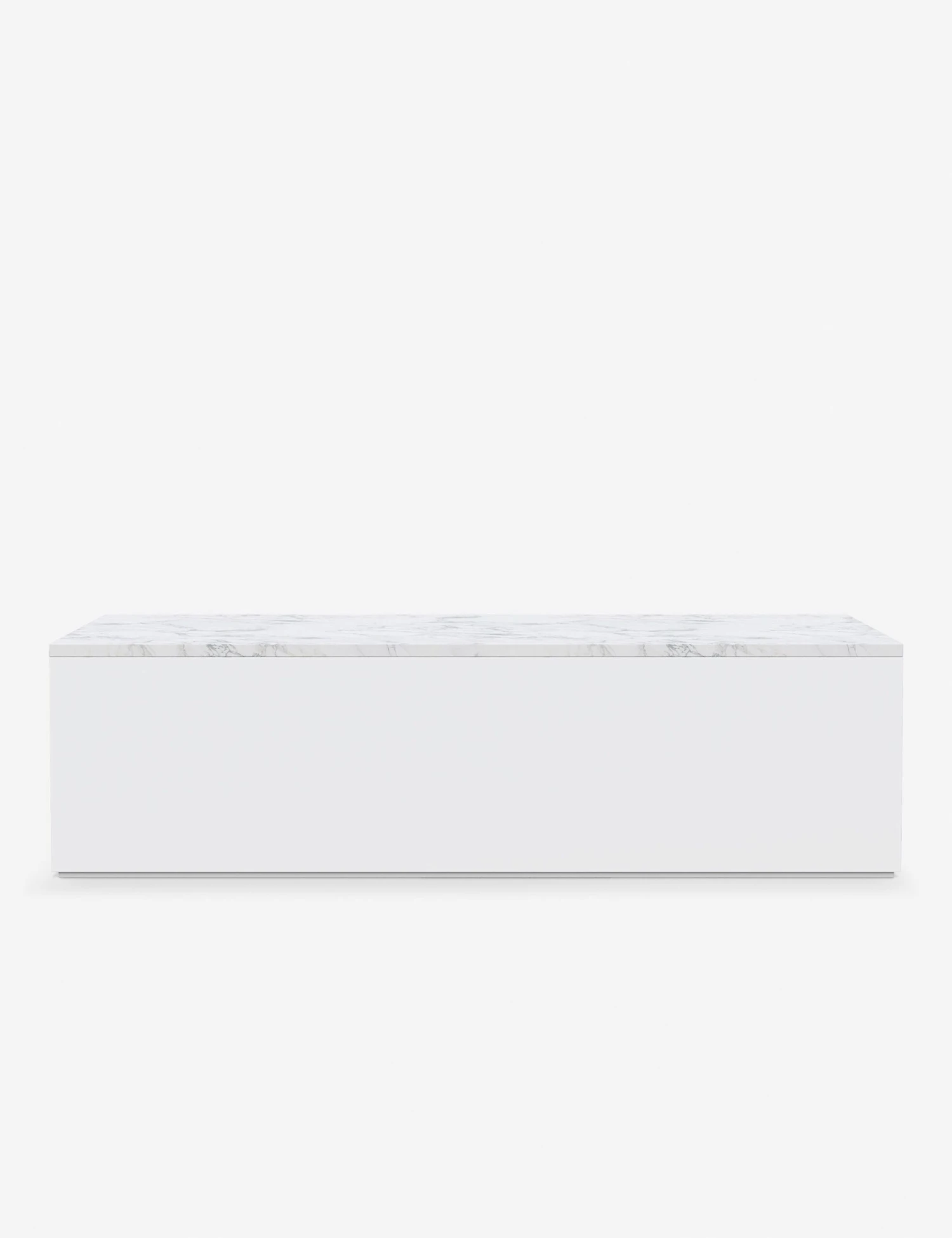 The Romero sofa cuts a clean, modern silhouette in white. The linear frame is topped with a beautiful piece of Carrara marble, bringing a touch of luxury to the design. This metal coffee table is a stunning anchor piece for a refined patio or sunroom edit.