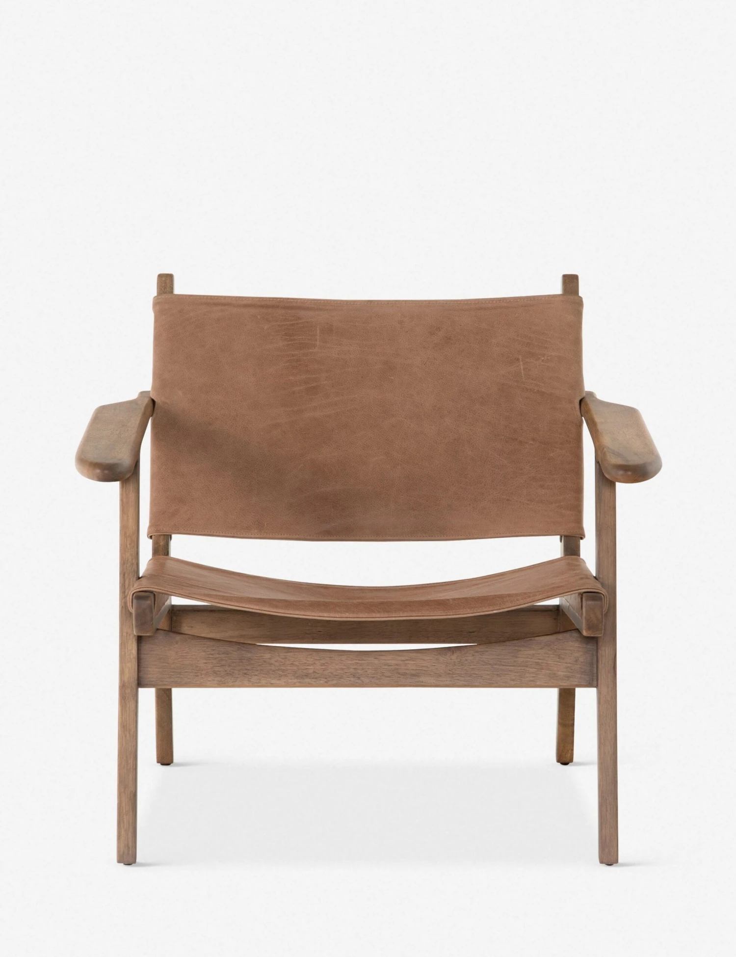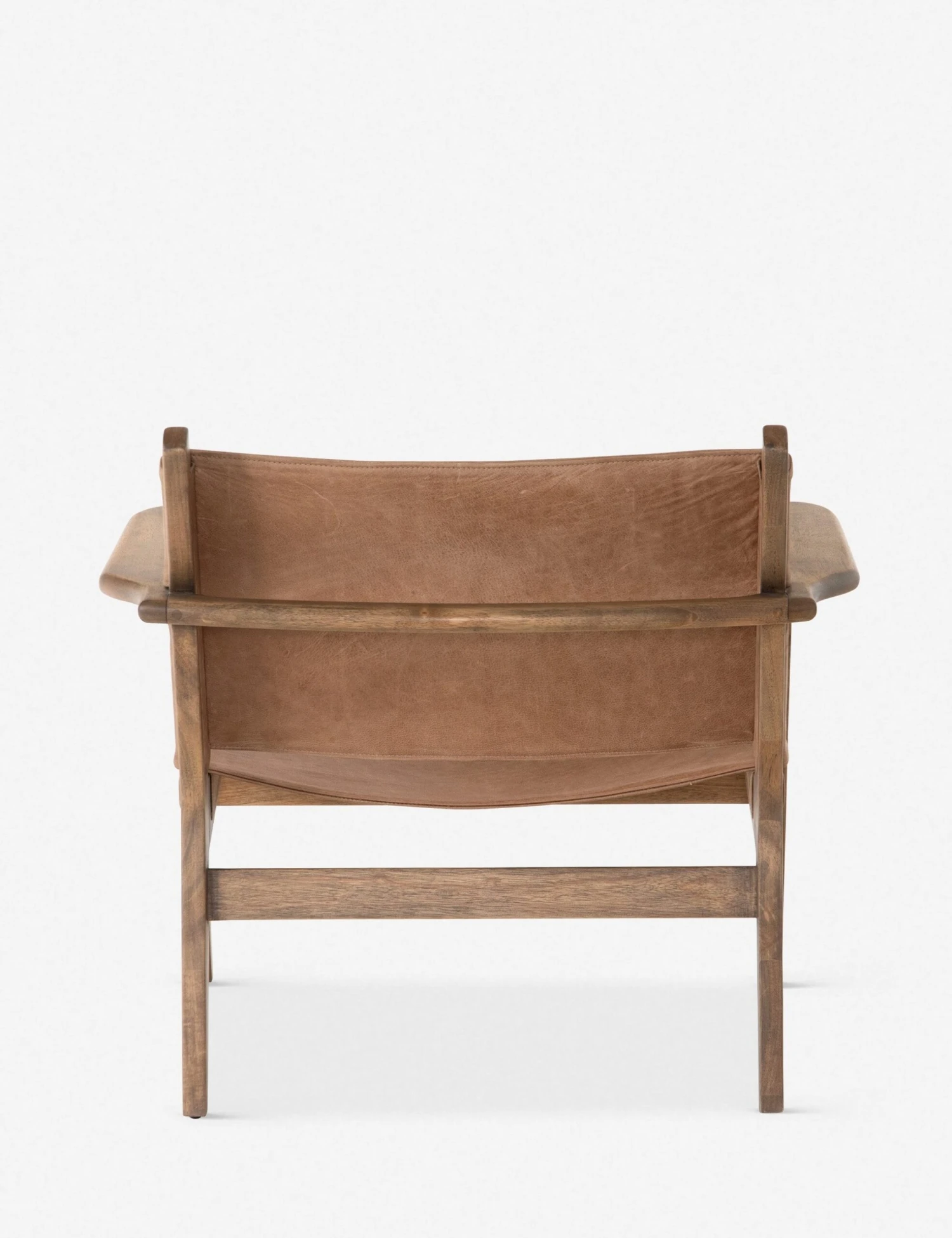 A classic sling chair design features a fresh, refined look with this occasional chair and its top-grain leather seat and back. Its tanned leather finish is paired with a streamlined burnished wood frame for a clean, tonal decorative chair. We think it looks great styled with a lighter neutral sofa and a mixed material coffee table to brighten up your space.