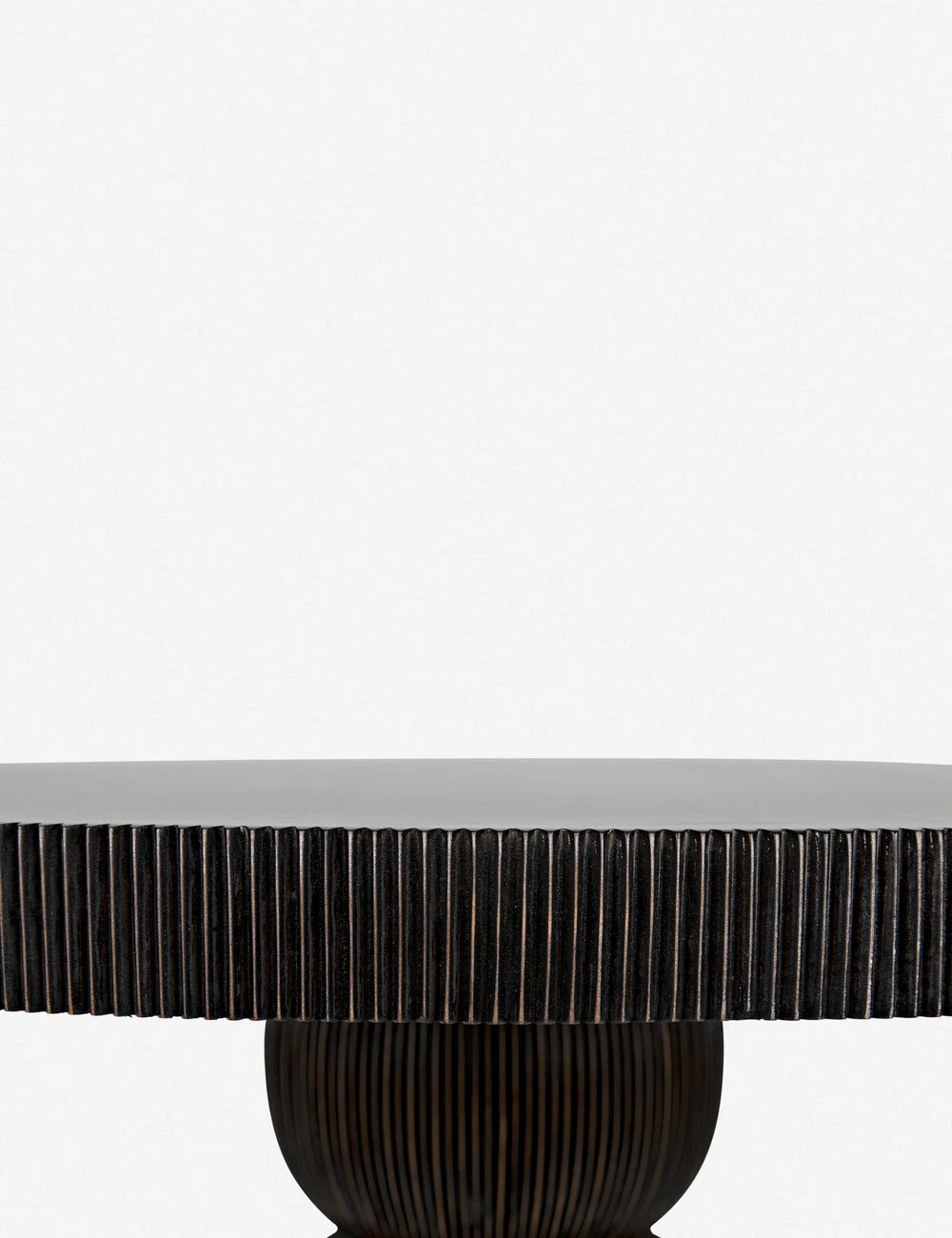 This mahogany wood dining table features a fluted veneer hand rubbed in a black finish for a flowing silhouette with endless textural allure. We love this round pedestal table for a chic breakfast nook or stylish kitchen addition.