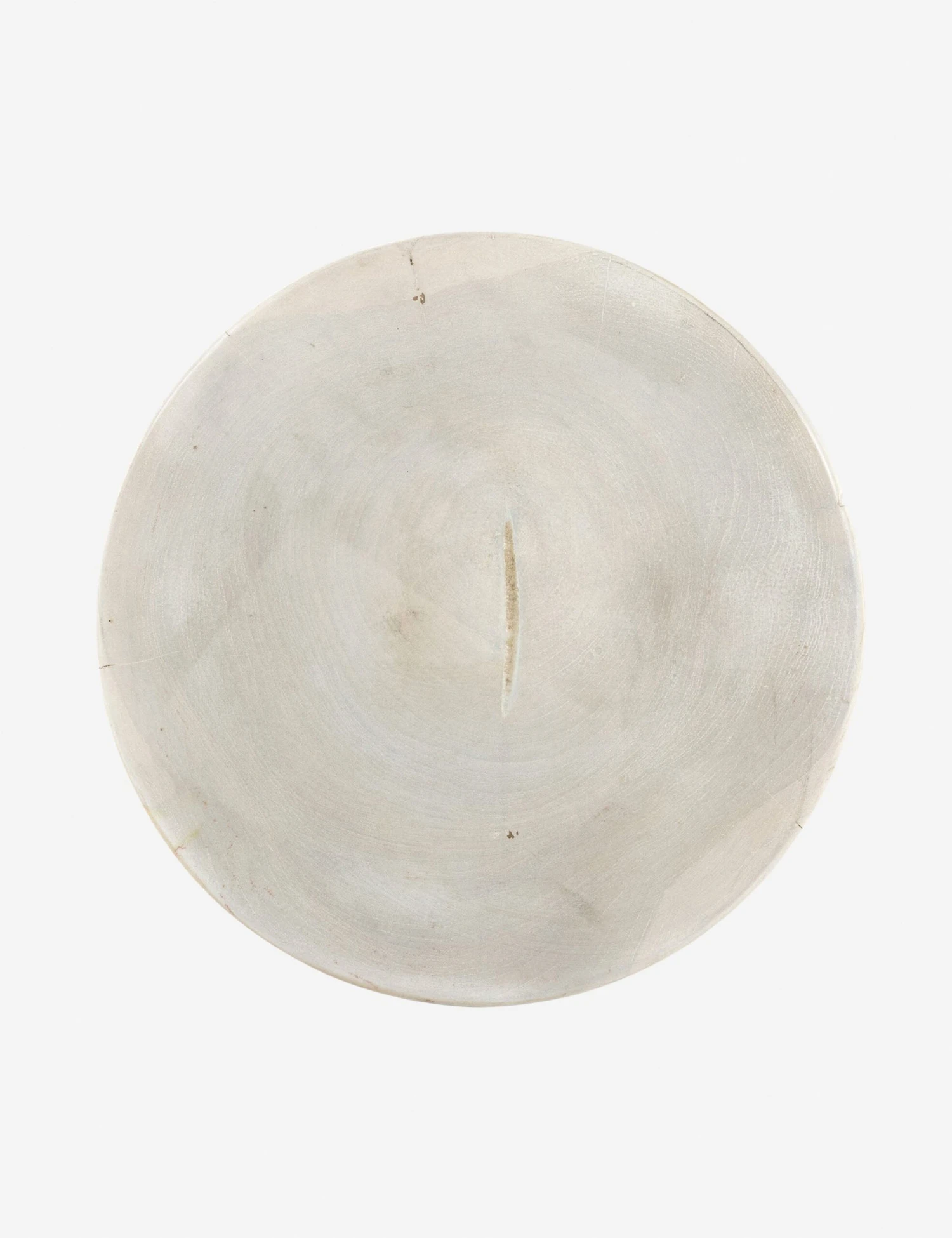 This chunky wood side table is carved from solid teak to offer natural grain texture with a sculptural edge. Finished for outdoor or indoor use, this end table blends organic style with a polished appeal.