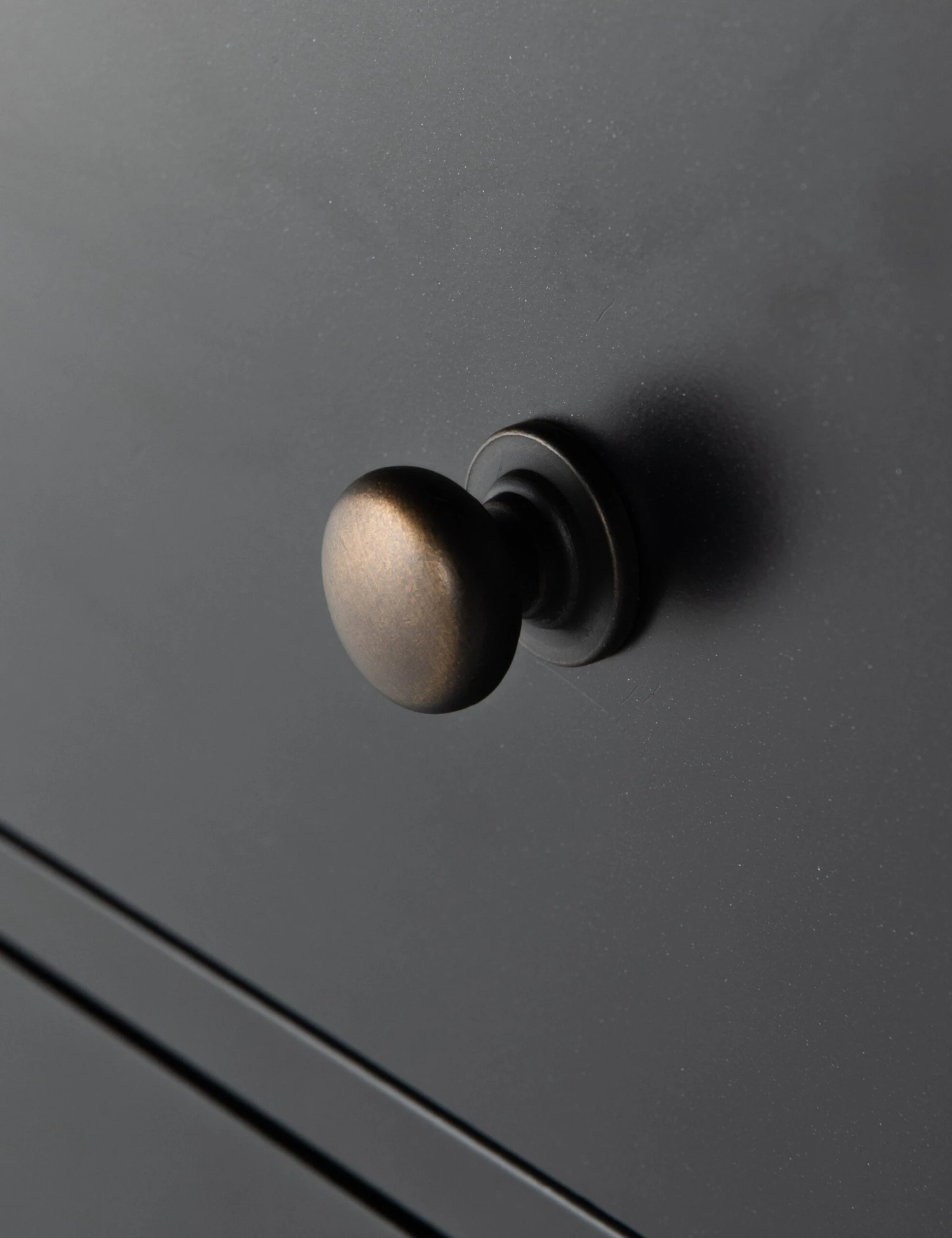 Perfect for industrial-inspired bedrooms, this tall eight-drawer dresser brings a sophisticated touch thanks to round brass drawer pulls that add a little shine to the black iron framing.